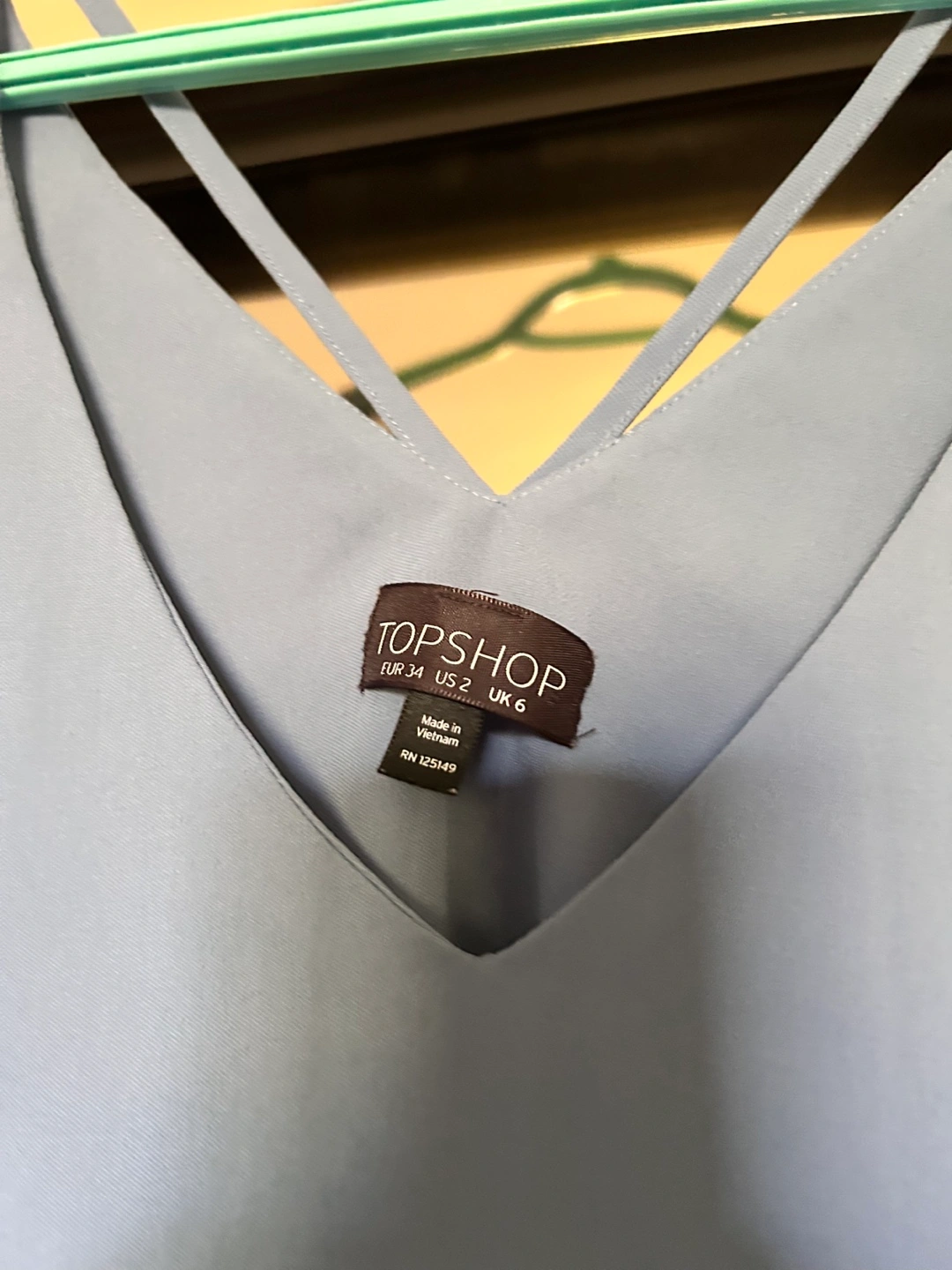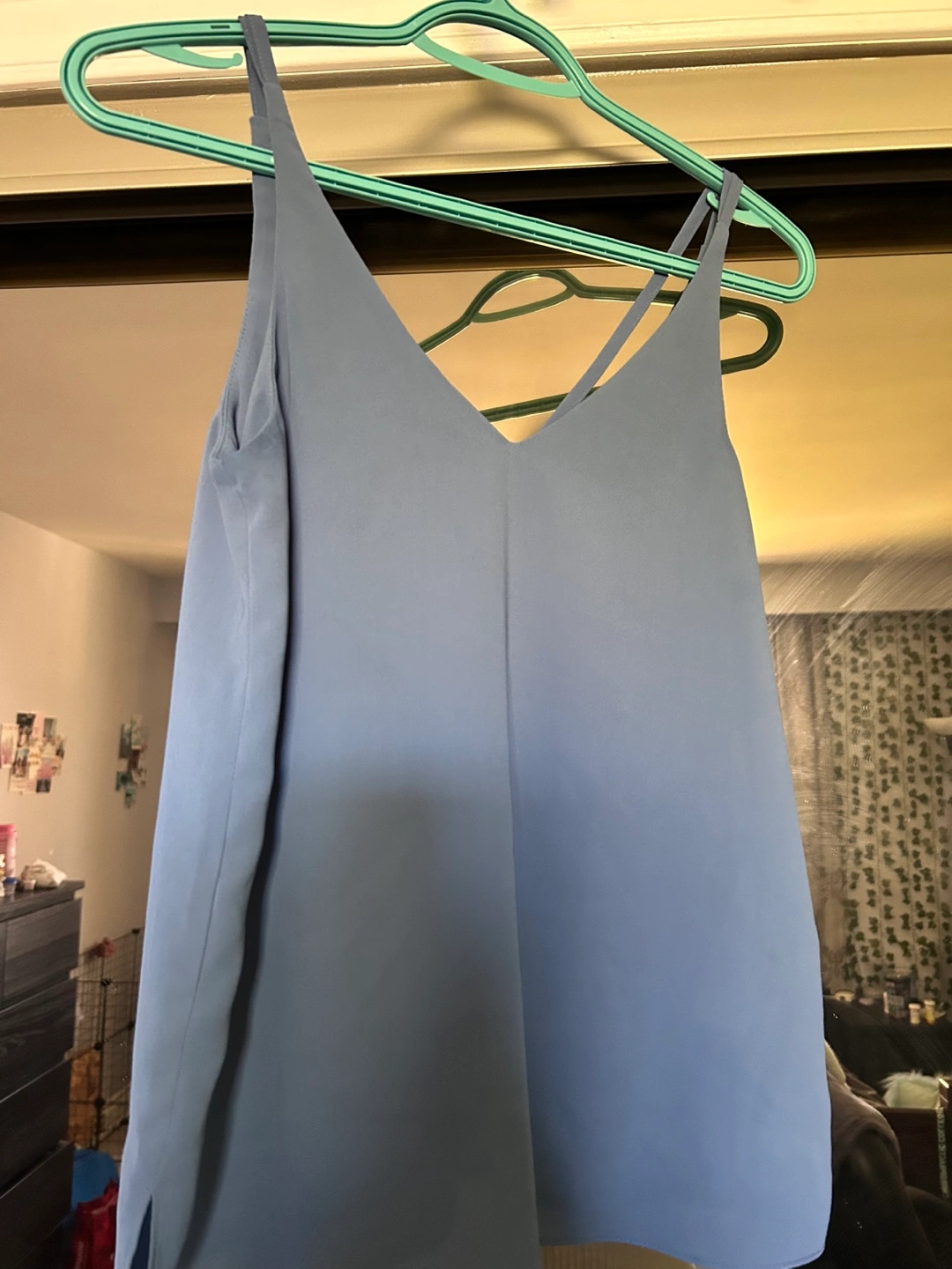 Beautiful dusty blue cami top. Cross straps at the back. Lightweight material. Size 6. Check out my other listings for more clothes and other items! Willing to make bundle deals.