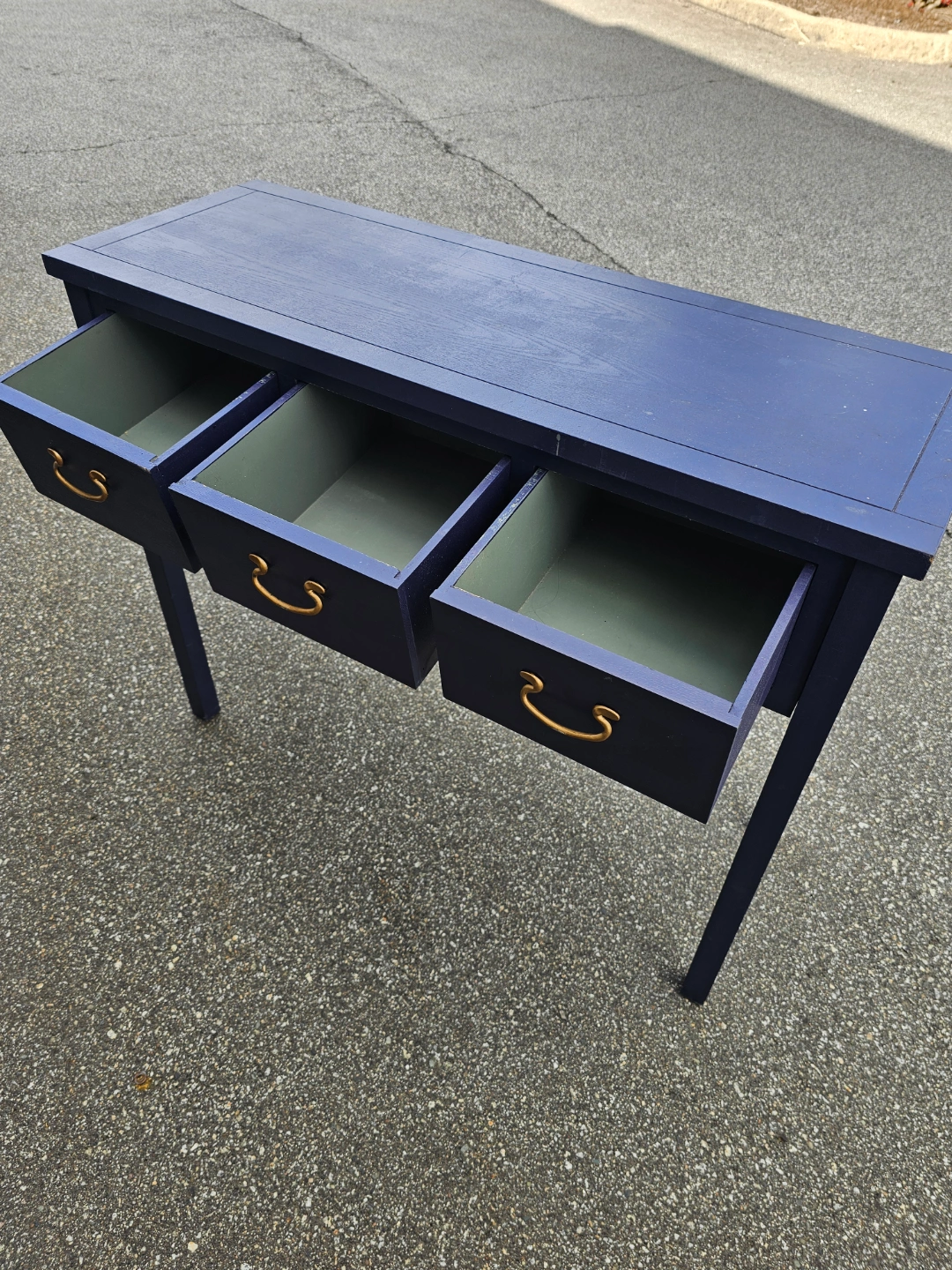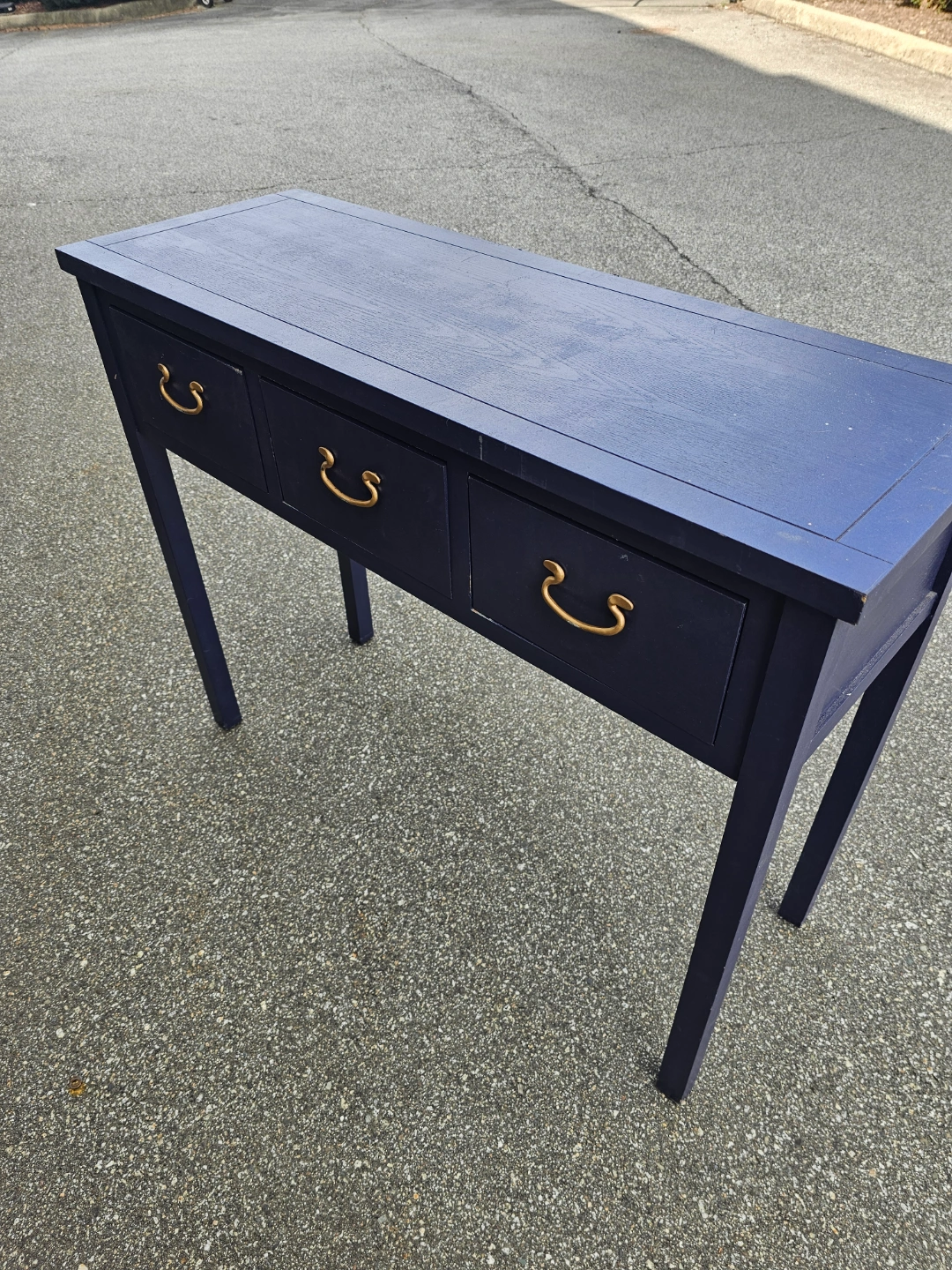 Buy & SellDark Blue Console Table with Three DrawersDark Blue Console Table with Three Drawers$100Three-drawer console table. Dark blue finish. Gold-toned drawer pulls. Simple design. Approximate dimensions 39" long.WHERE TO MEETCheck LocationView MapSELLERnikoHopington100 reviews5 chats·2 favorites·113 views