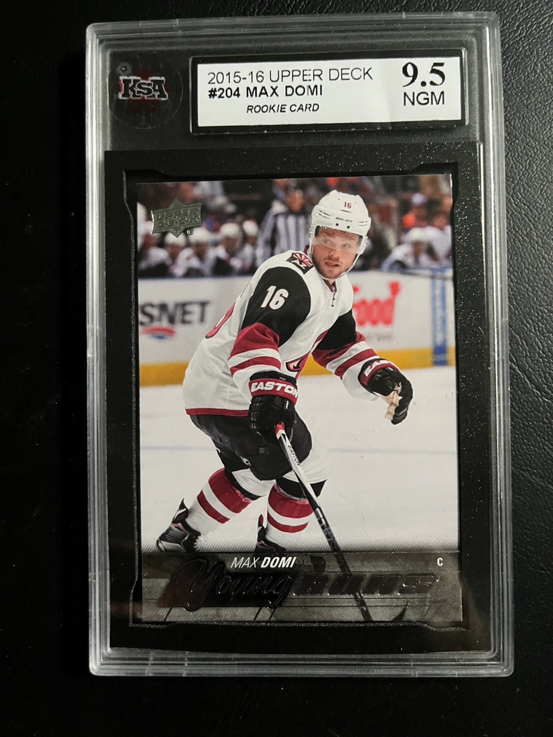 2015-16 Upper Deck Young Guns Max Domi rookie card, number 204. Graded 9.5 by KSA.