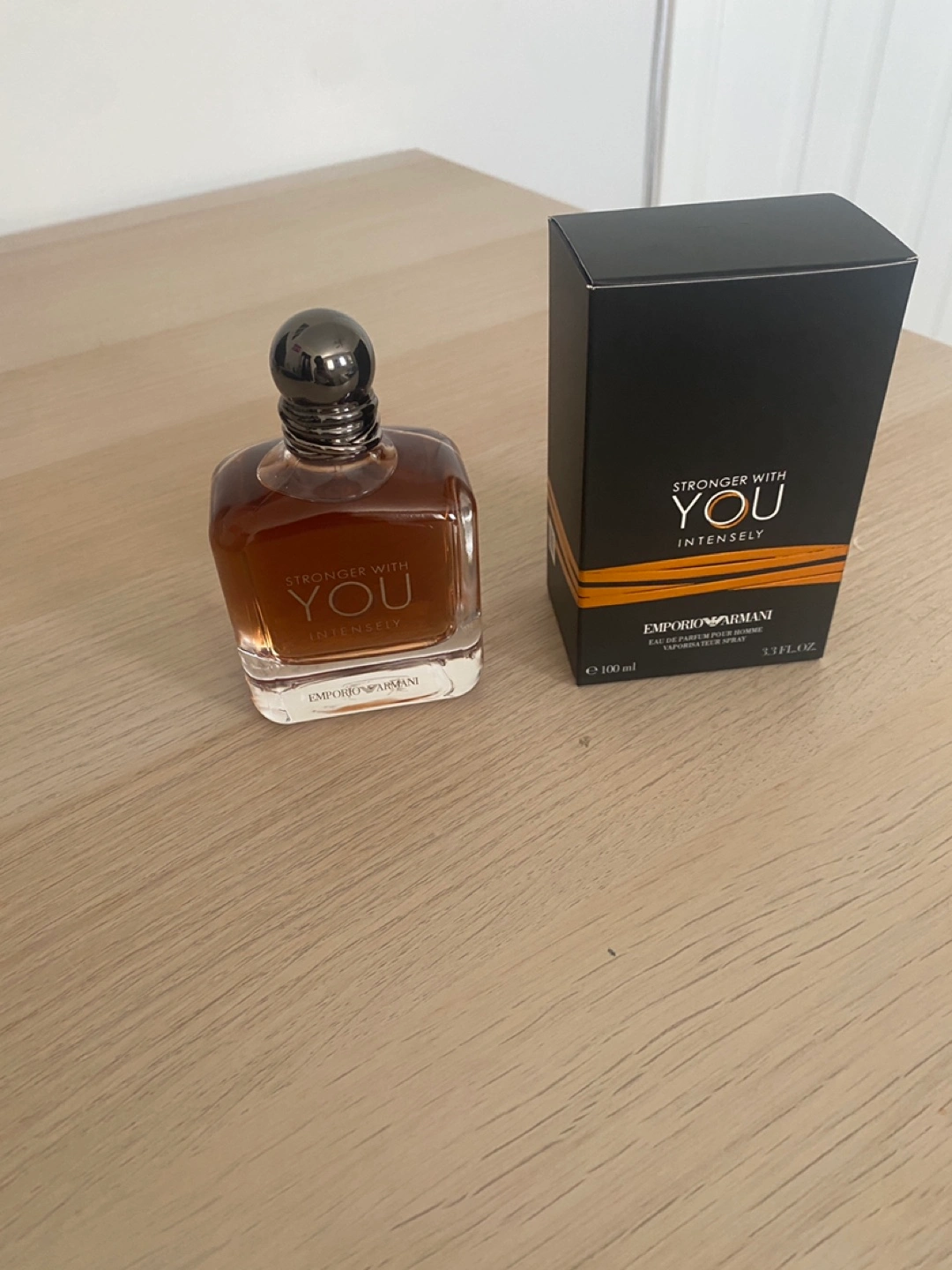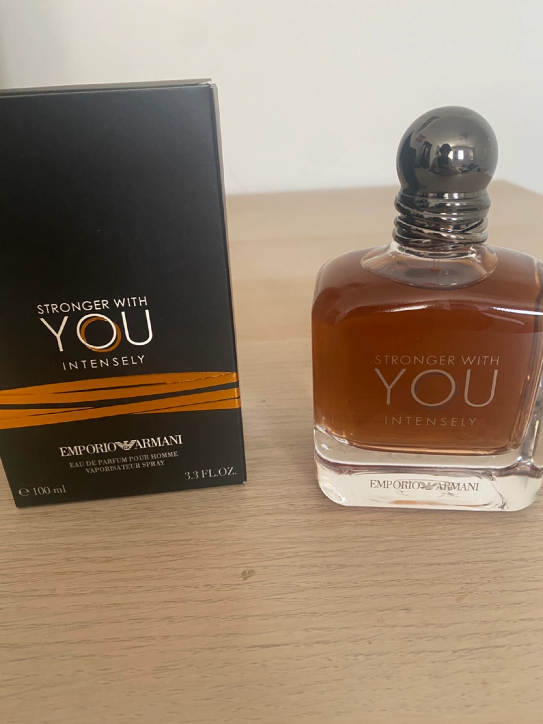 Stronger with you intensely by Armani. Part of my Dad’s Cologne Collection but selling this for some money since he rarely uses any of them.