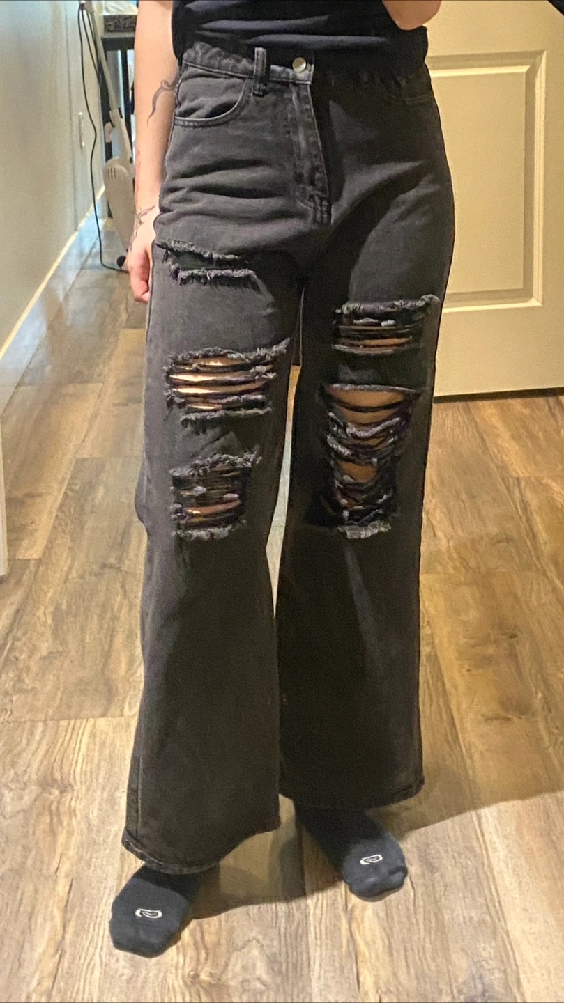 Buy & SellBlack Distressed Wide Leg JeansBlack Distressed Wide Leg Jeans$10Wide leg jeans. Dark wash. Multiple distressed areas. Good condition. Small Size, High waisted.ConditionGoodSizeSWHERE TO MEETBroadway-City Hall StationView MapSELLERverifiedmimiVictoria Fraserview751 review0 chats·0 favorites·22 views