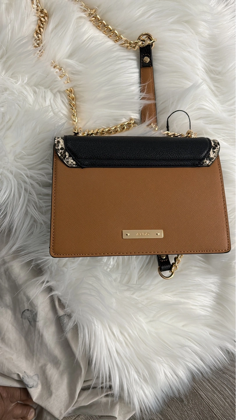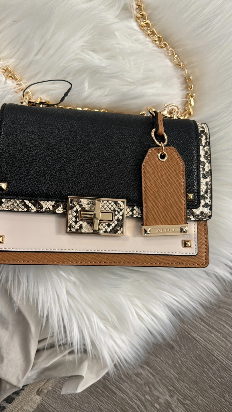 ALDO Black, Beige, and Brown Snakeskin-Trimmed Crossbody Bag