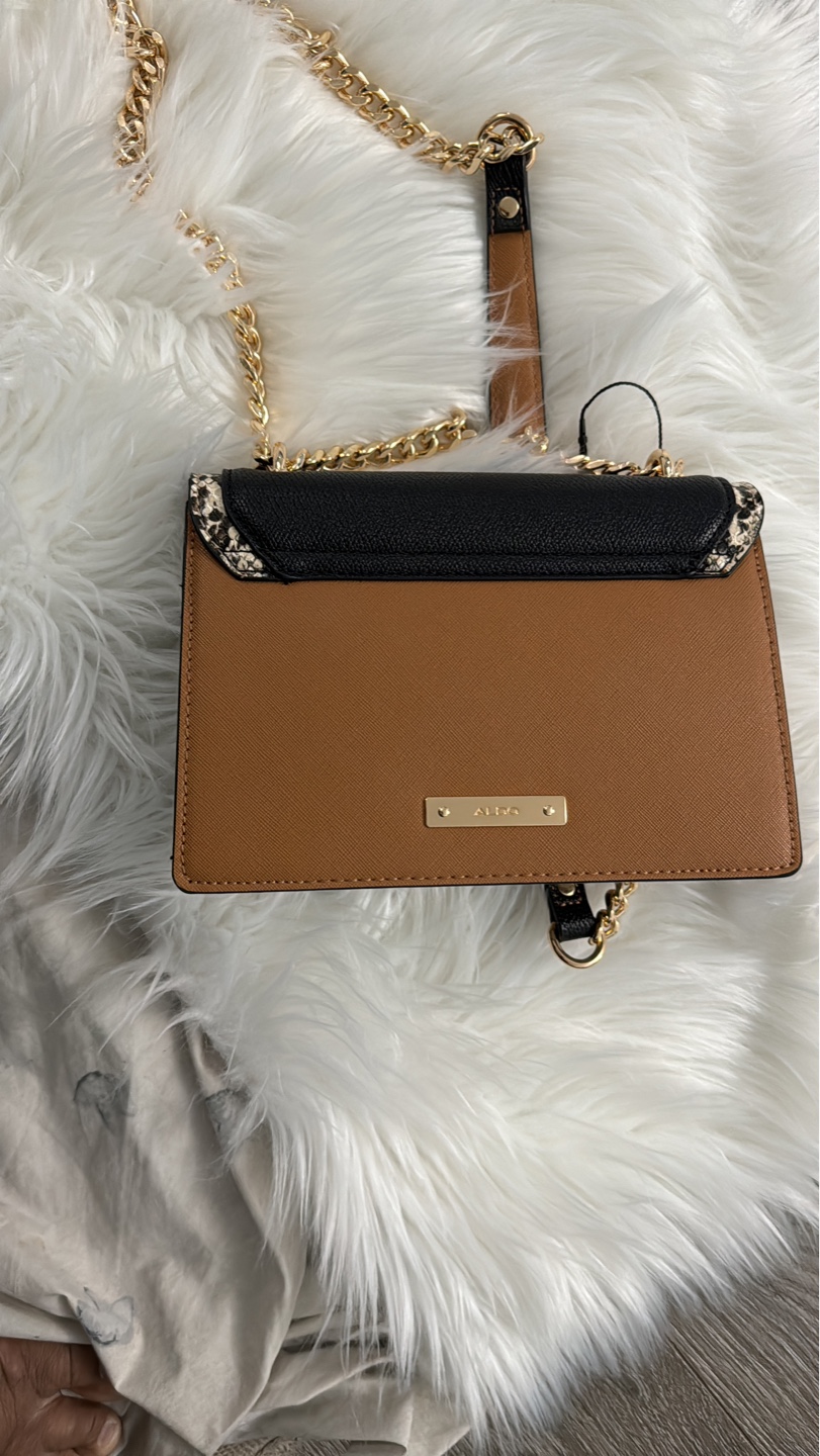 ALDO Black, Beige, and Brown Snakeskin-Trimmed Crossbody Bag
