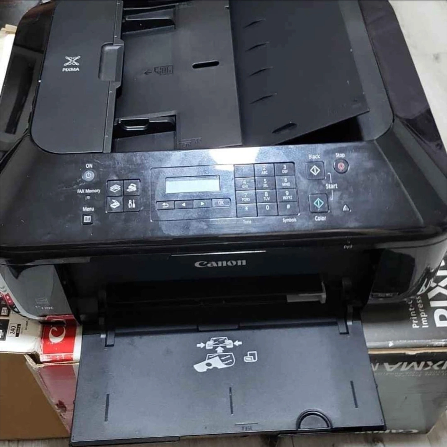 Wireless All-in-One inkjet printer. Prints, scans, copies, and faxes. Includes control panel and paper tray. Good condition.