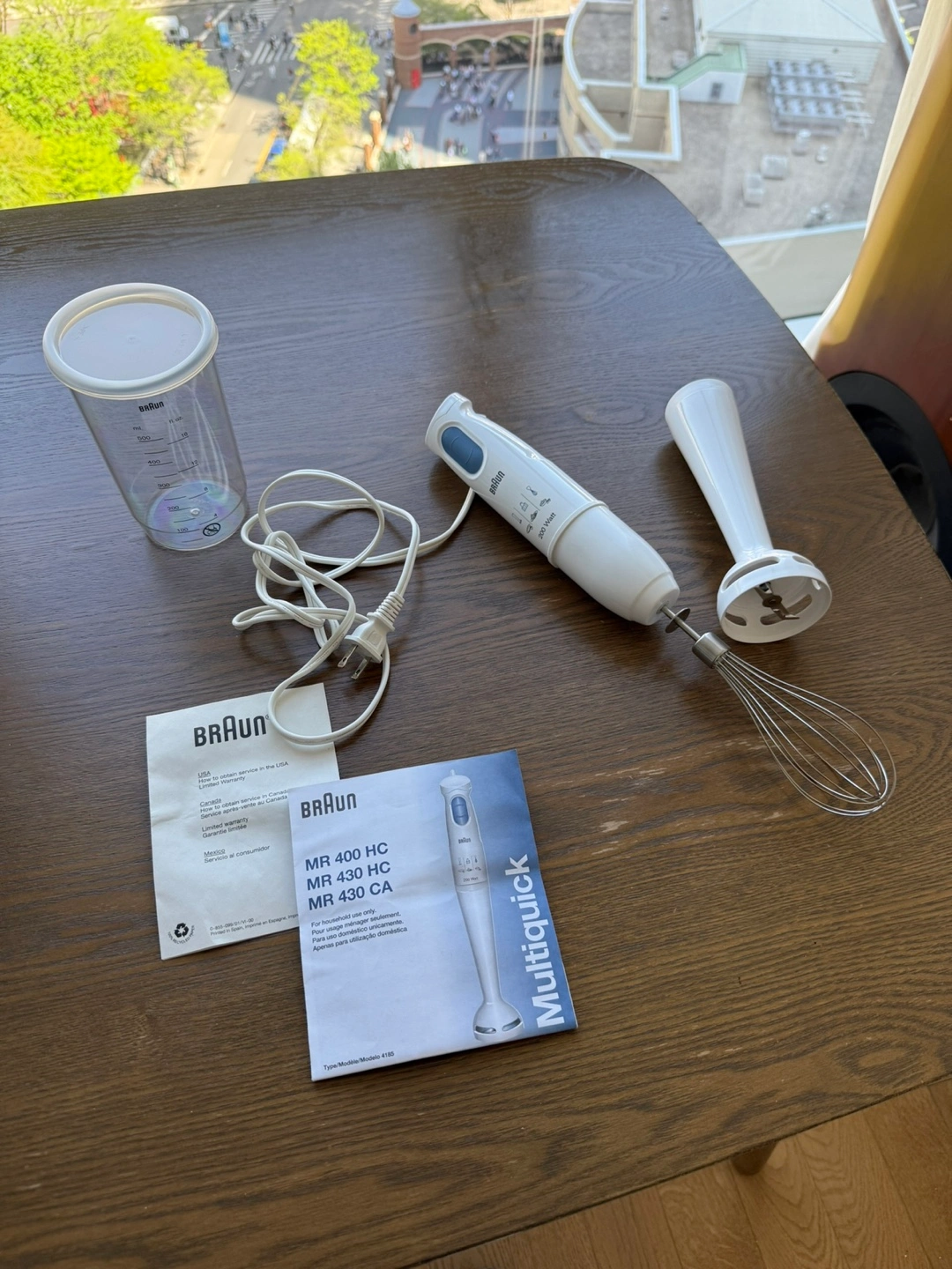 Note: The original mixing cup attachment is missing, but everything else is fully functional and in never-used condition.