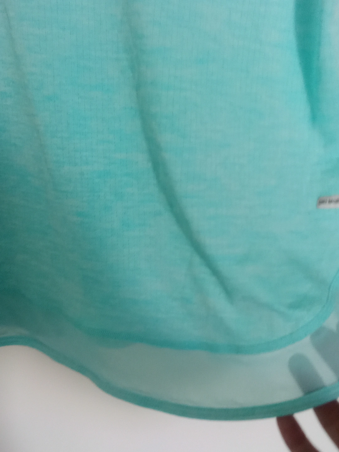 Aqua coloured women's athletic shirt. Size XS. Short sleeves. Dri-More Tech fabric. Mesh detail at the bottom hem.