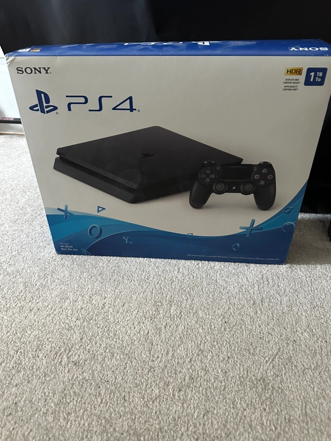 PlayStation 4 Slim console, 1TB. Includes one controller, power cord, HDMI cable. Also included: 11 PS4 games and wired gaming headset. Great condition, ready to play!