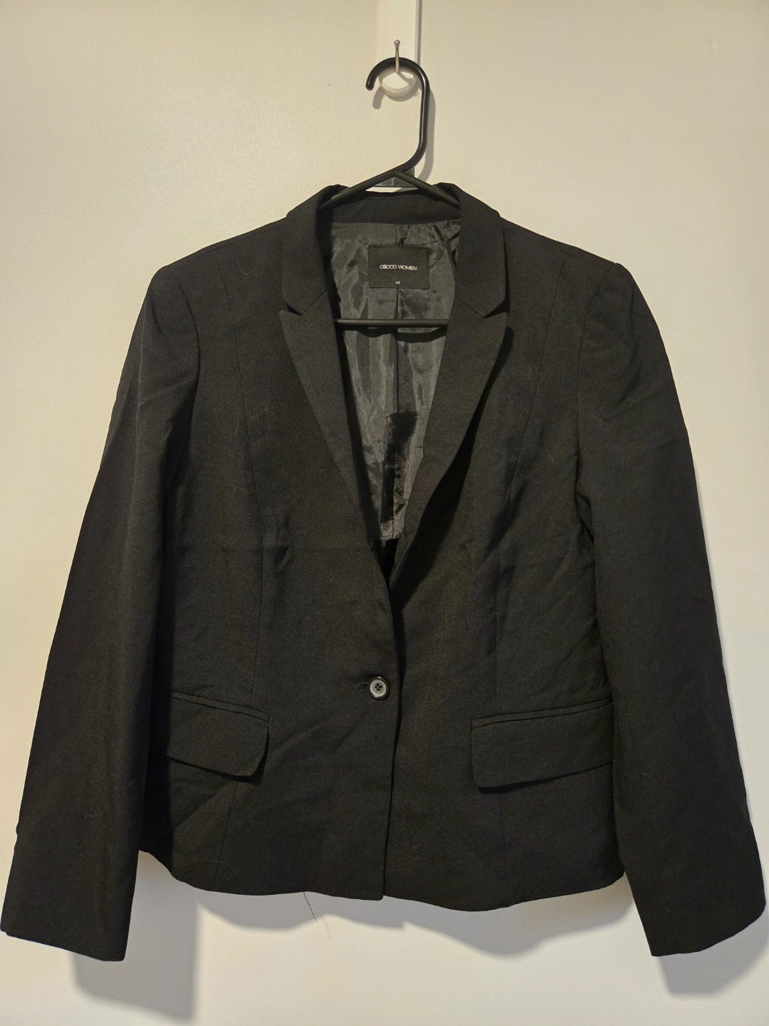 55Classic black blazer. One button closure. Good for work or special occasions. Size 40. pick up in Langley