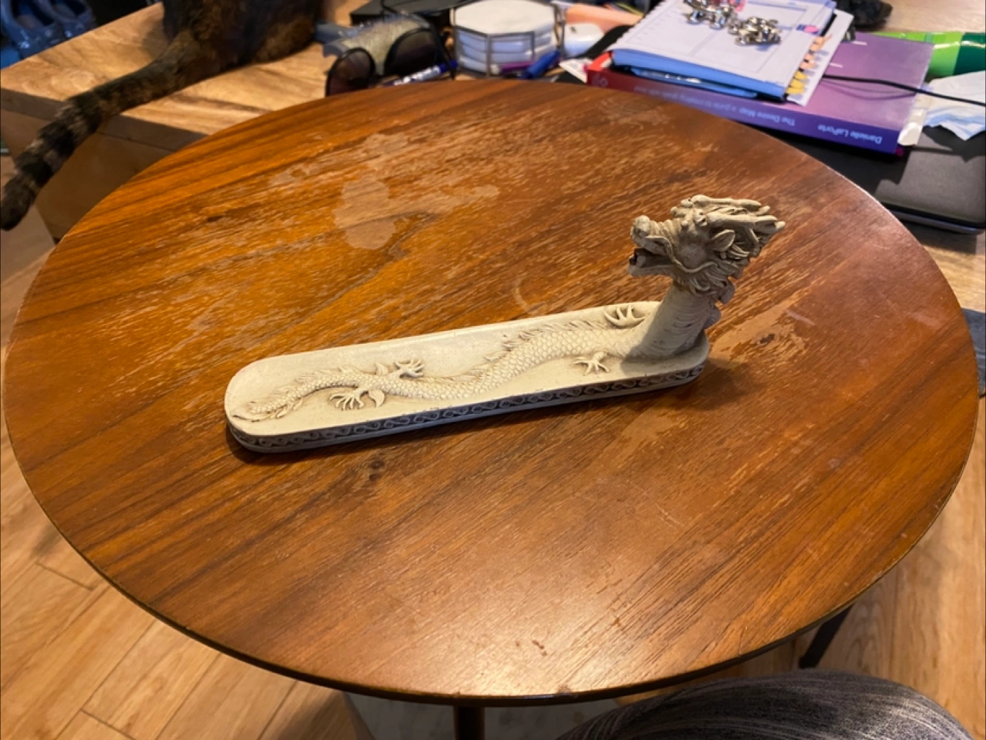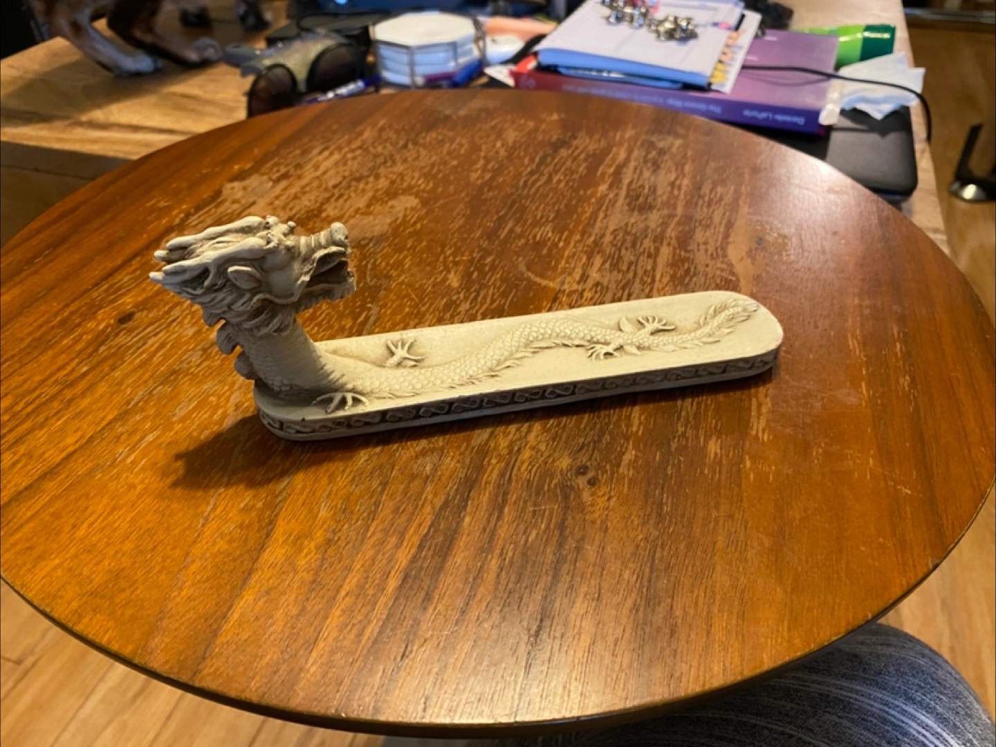 Unique incense burner. Features a dragon design. Off-white colour. Great for adding an oriental touch to your home decor.