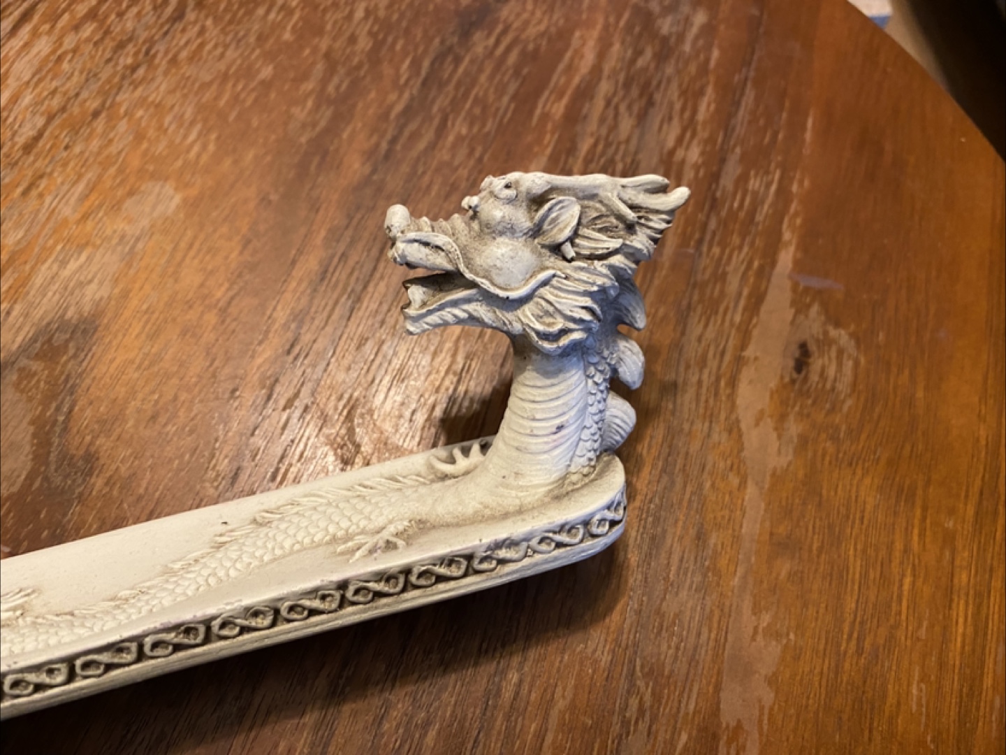 Unique incense burner. Features a dragon design. Off-white colour. Great for adding an oriental touch to your home decor.