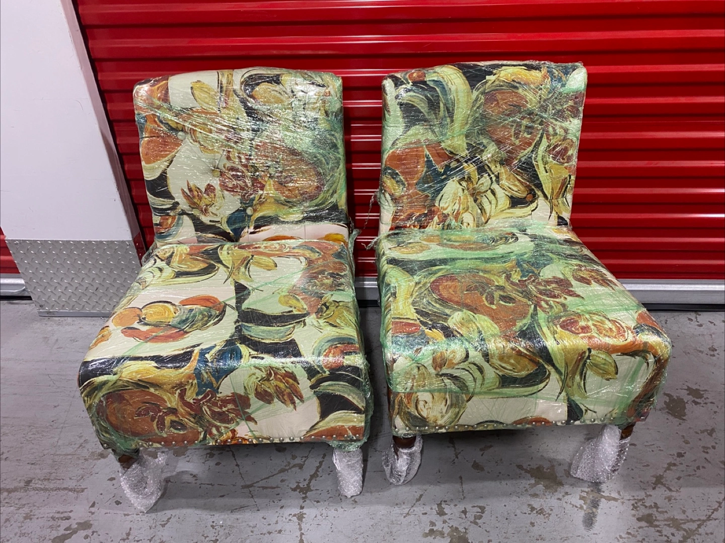 These armless accent chairs feature a low back and an attached cushion upholstered in a printed fabric, for a chic contemporary look.