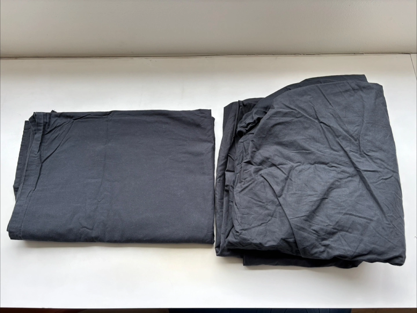 Complete bedding set (Queen size). Includes one flat sheet, one fitted sheet, and two pillowcases (69 cm x 50 cm). Soft cotton material. Great condition. Smoke and pet free home.