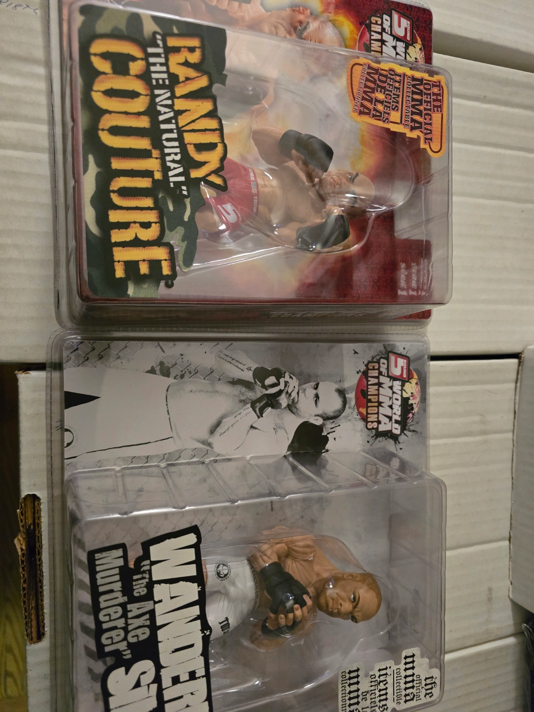 Two collectible MMA action figures. Randy Couture, "The Natural", and Wanderlei Silva, "The Axe Murderer". Figures in packaging $20 each