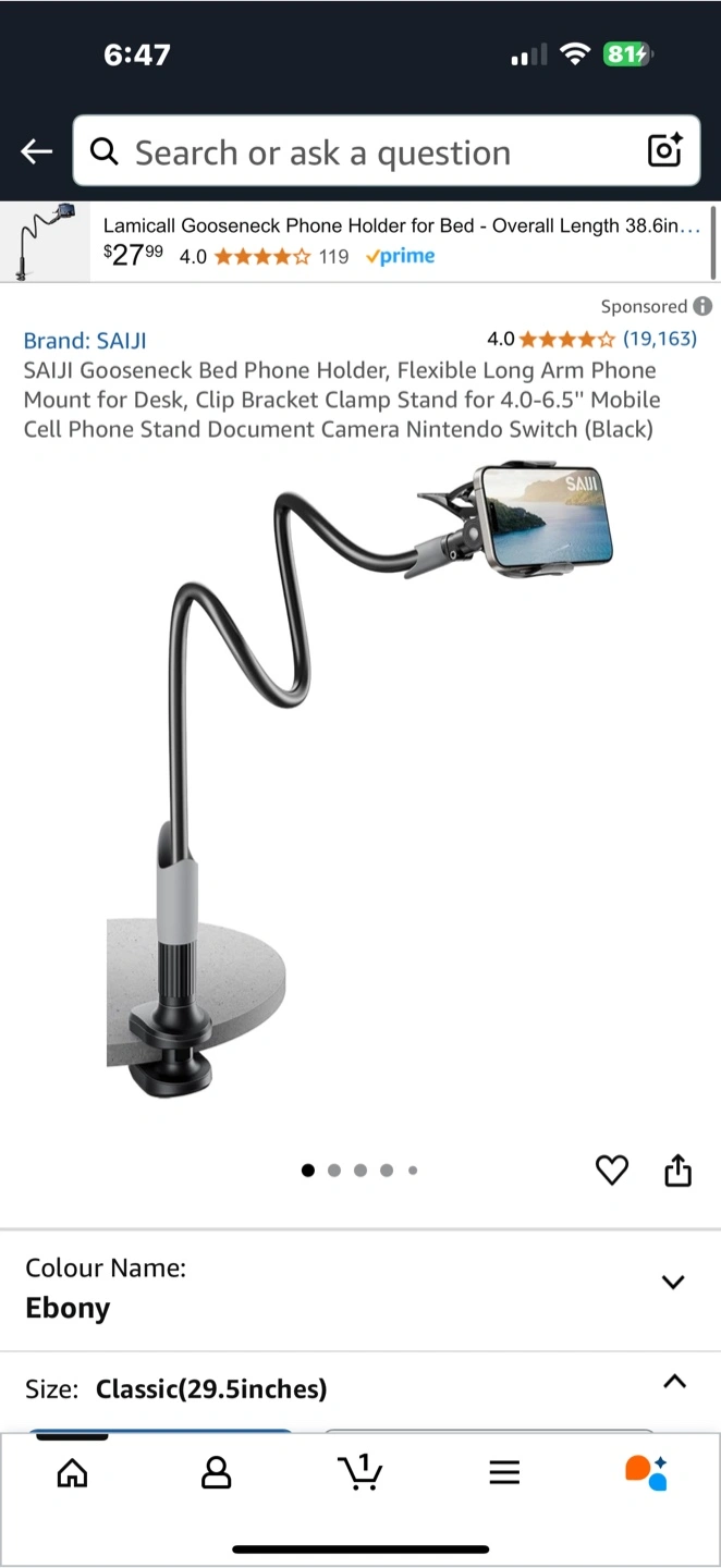 SAIJI Gooseneck Phone Holder - Flexible Long Arm Clamp Stand