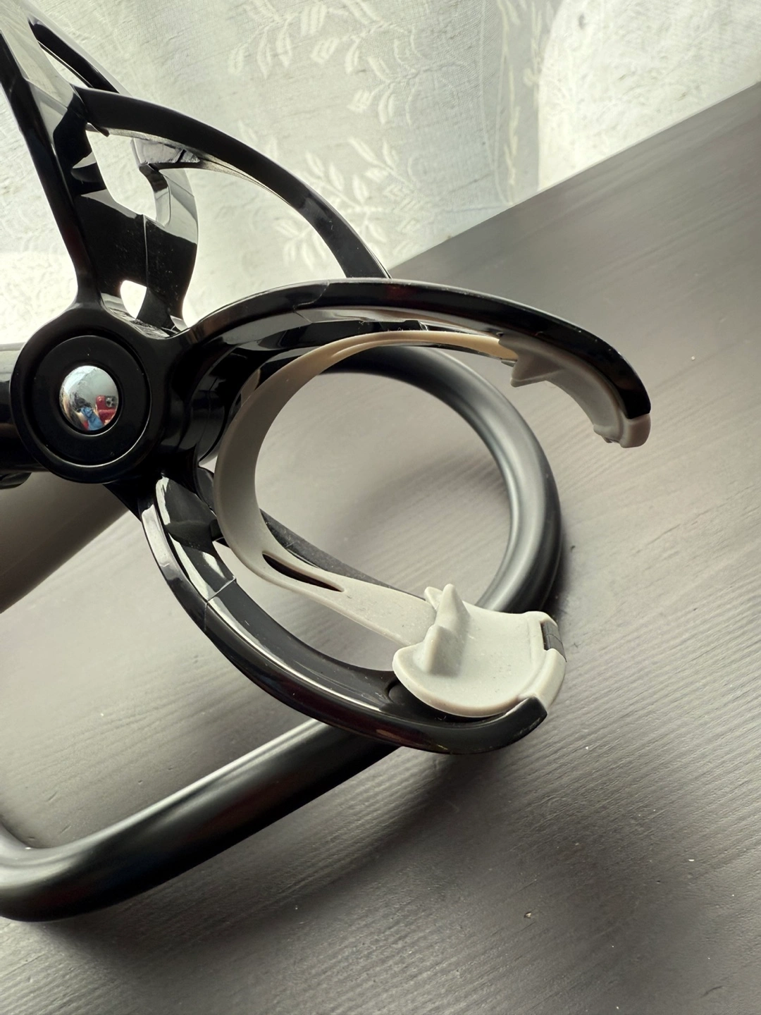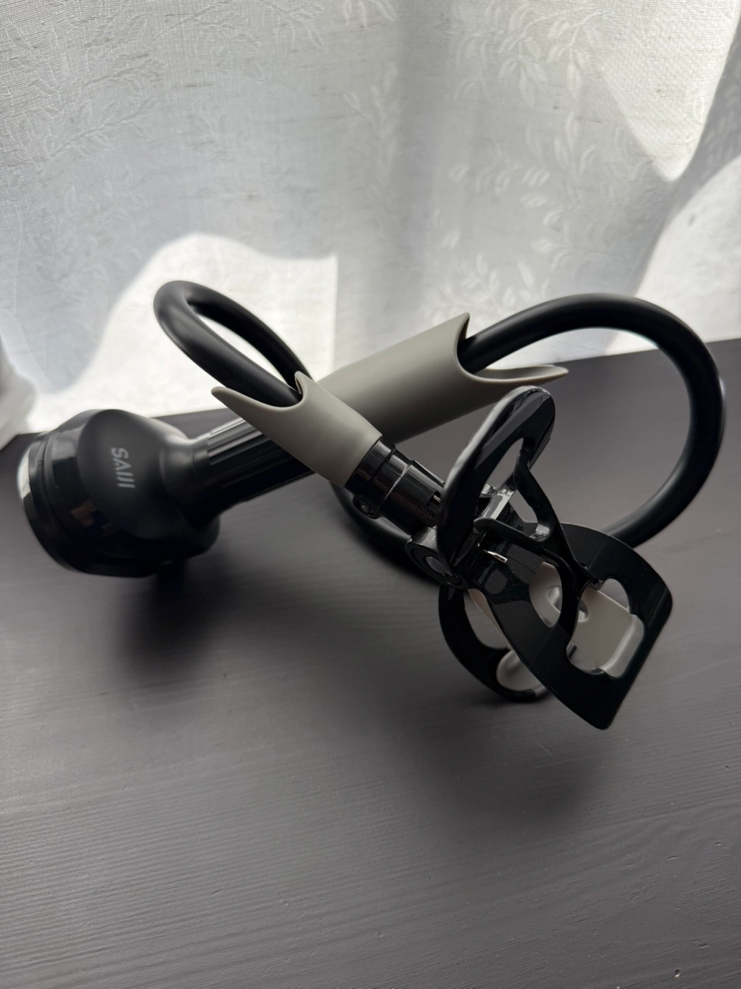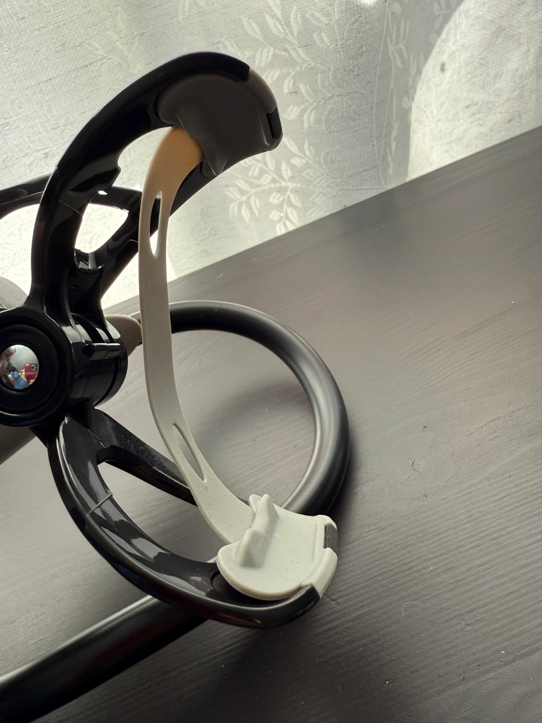 Flexible phone holder. Attaches to desk or bed. Long arm. Compatible with most smartphones and Nintendo Switch. Black colour.
