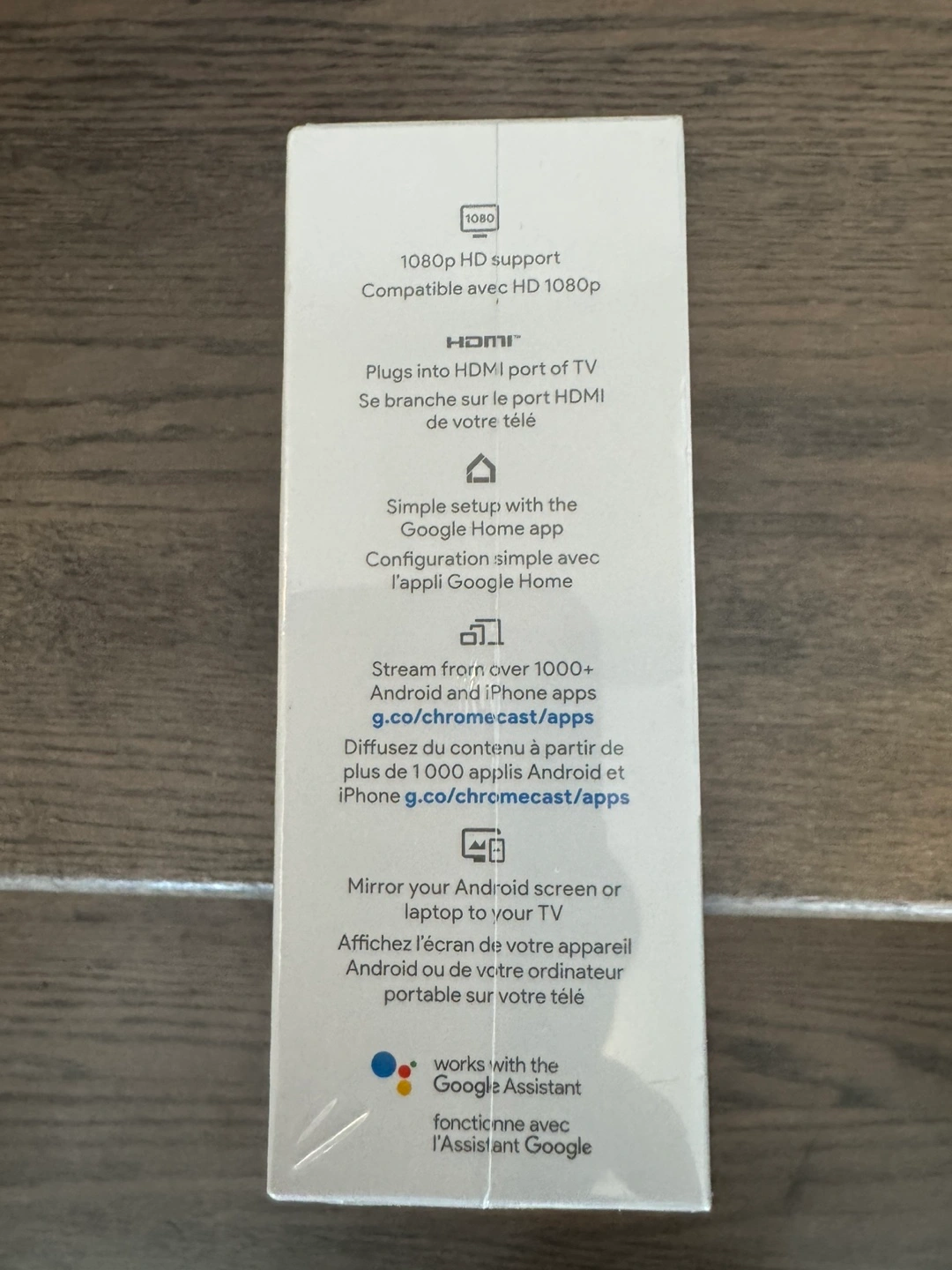 New Google Chromecast. Stream from 1000+ apps. 1080p HD support. Simple setup with Google Home app. Mirror your Android screen or laptop to your TV. Works with Google Assistant.