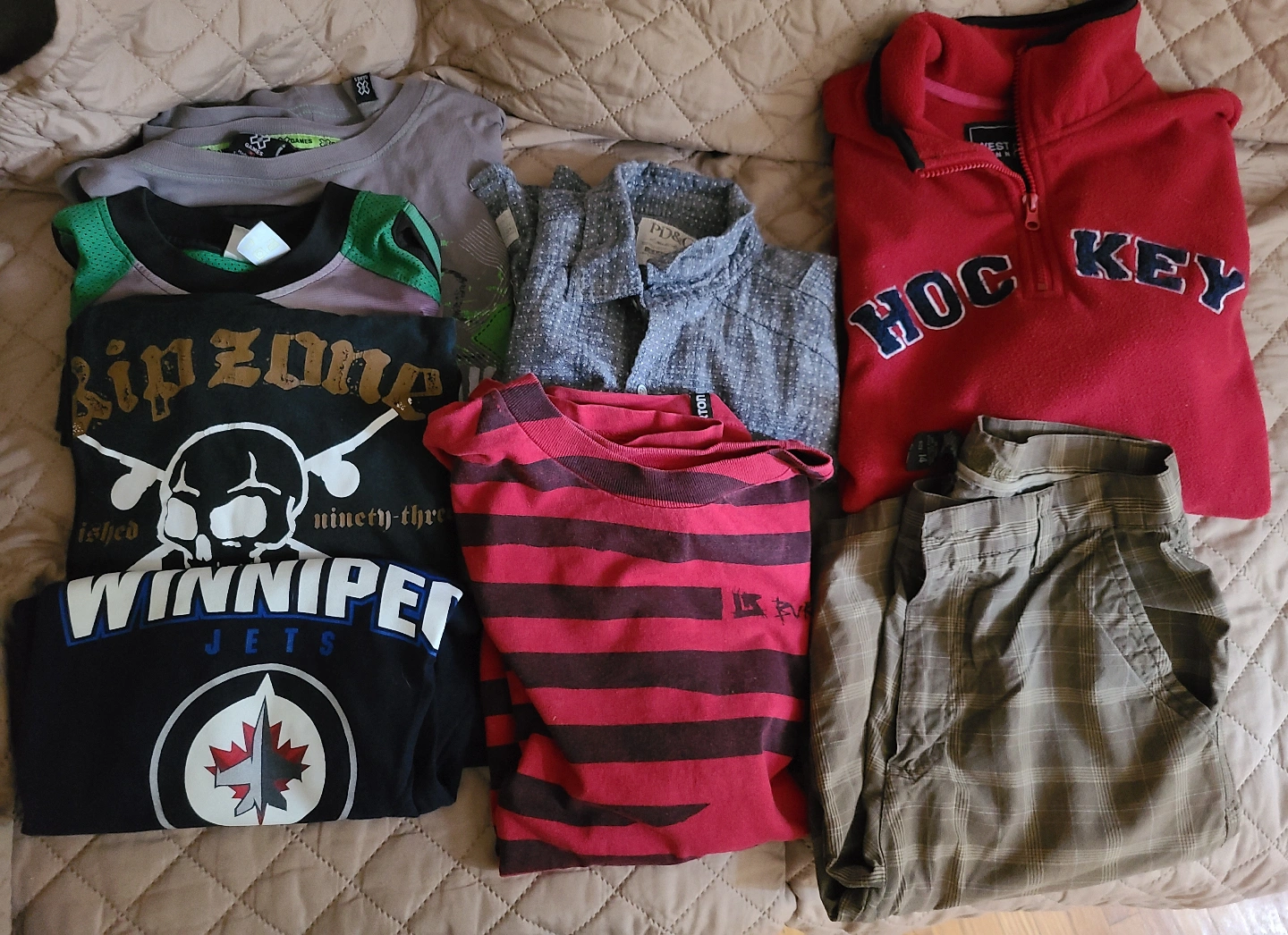 Boys clothing 5 tshirts ( 1 jets top never worn), 1 button up, 1 shorts , and 1 fleece pull over, size large/xl 14/16, pick up only Crestview/Unicity area