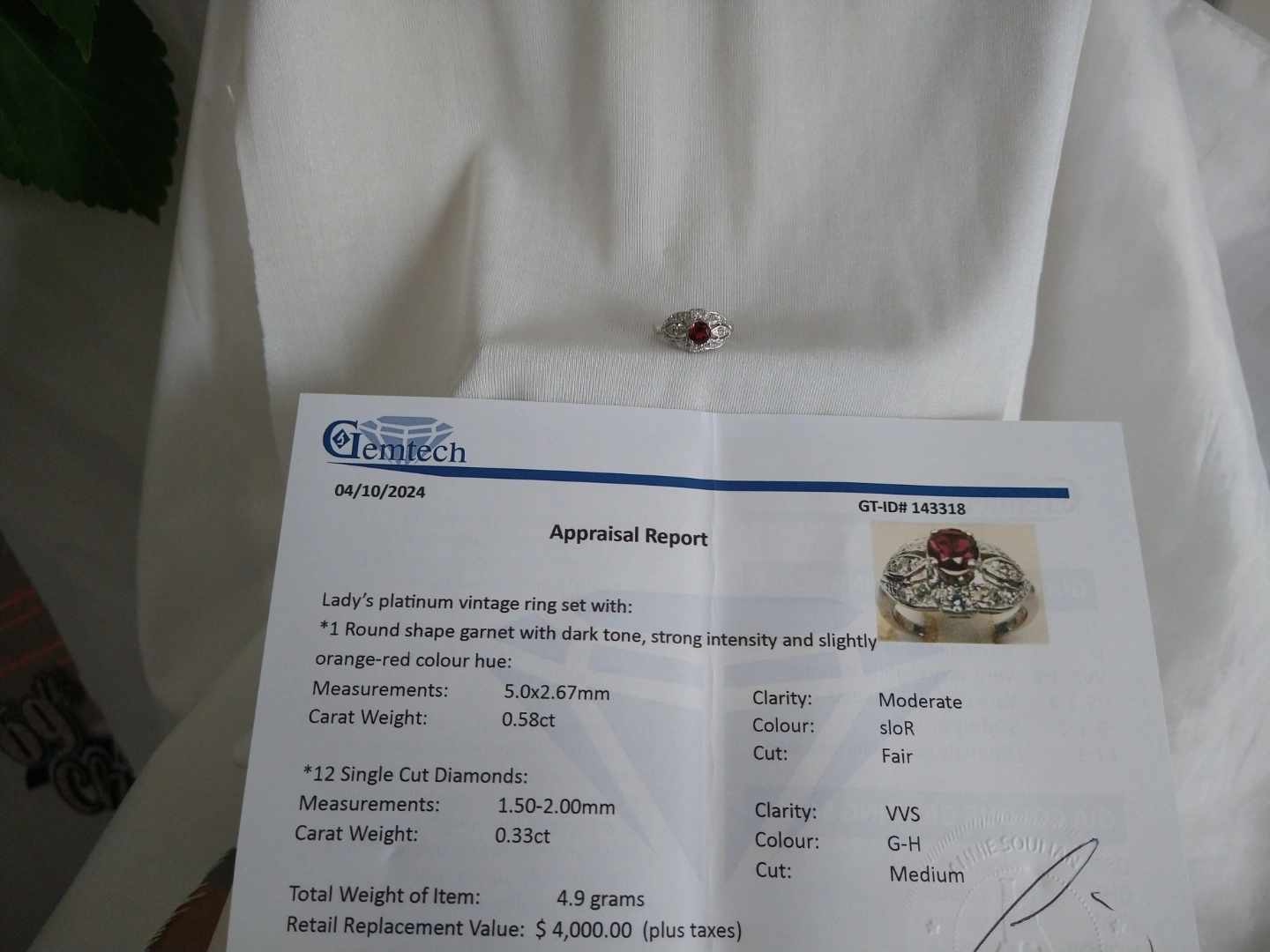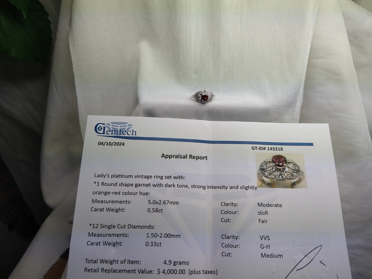 Vintage Platinum Garnet and Diamond Ring🥕