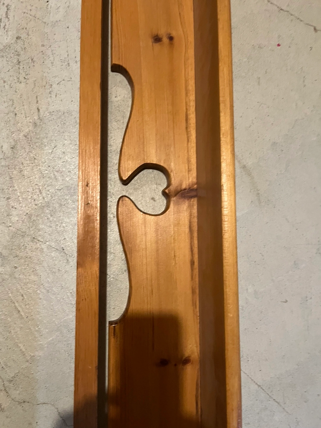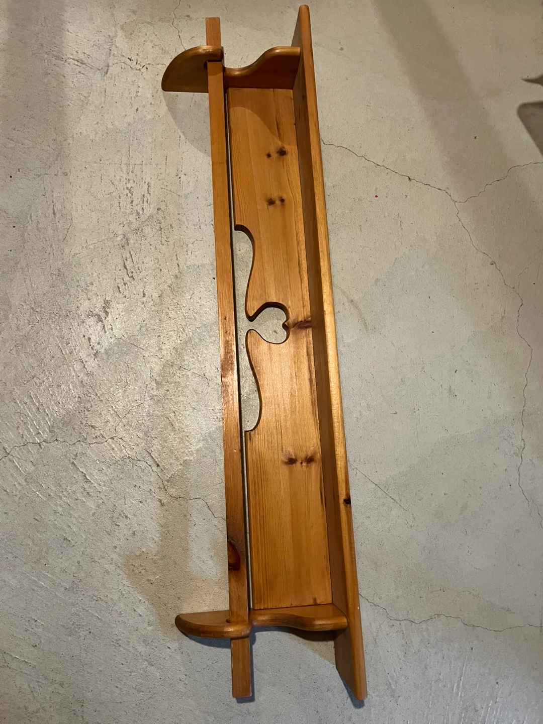 Lovely handcrafted pine shelf. Unique cutout design. Perfect for a bedroom, kitchen, or bathroom. Adds character to any space. Wall mountable.