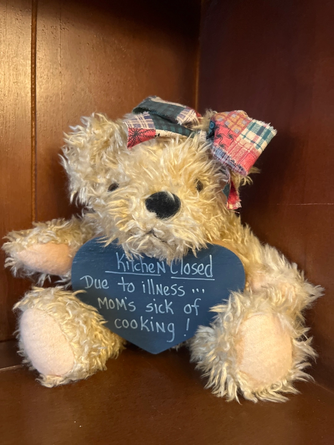Adorable Plush Teddy Bear with Kitchen Closed Sign
