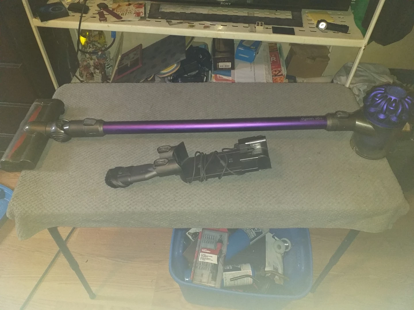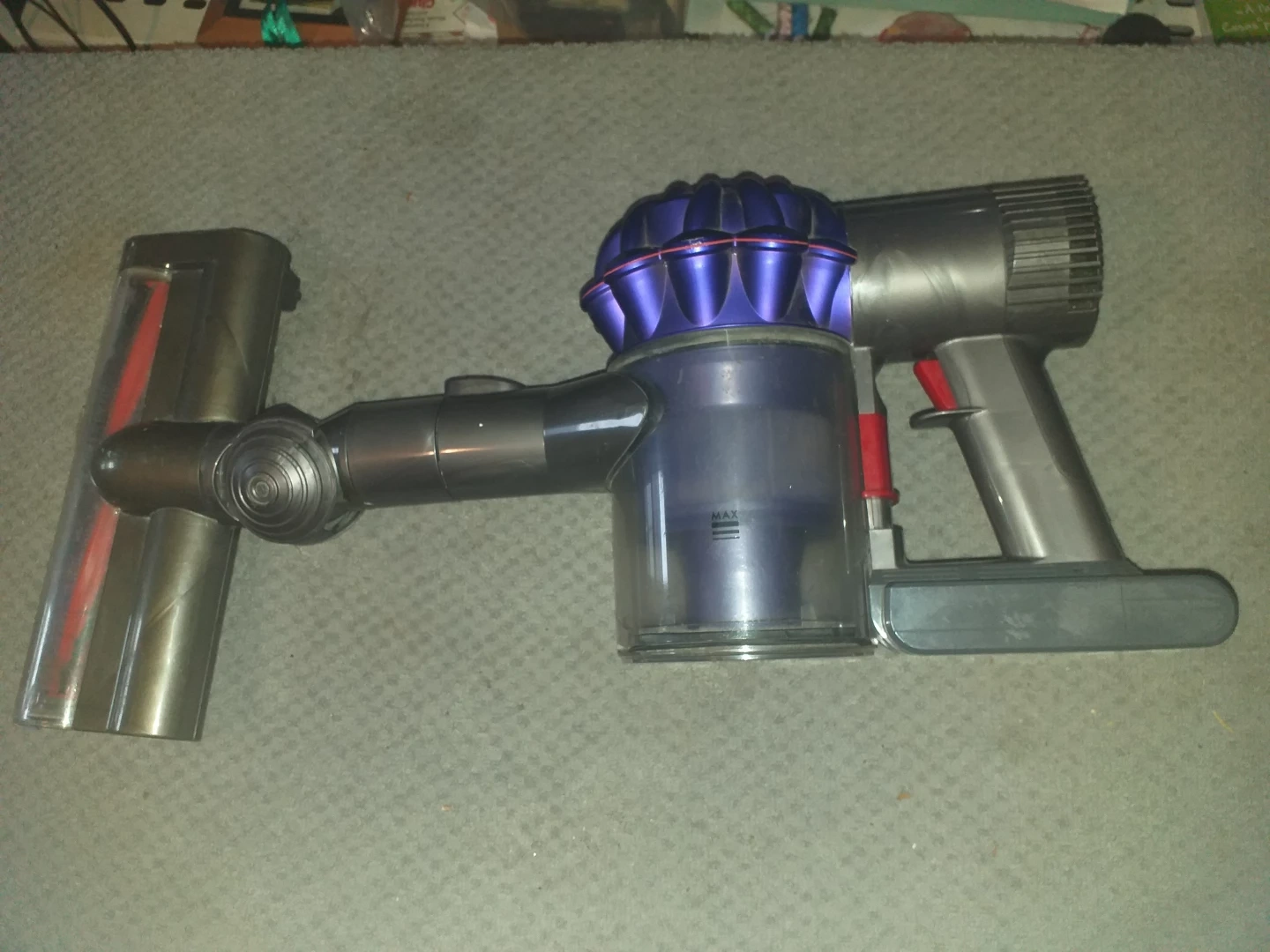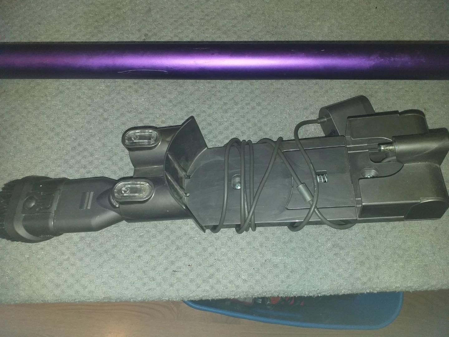 43Dyson V6+ handheld vacuum. Purple wand and charging dock included. Good condition. Used, but well-maintained.