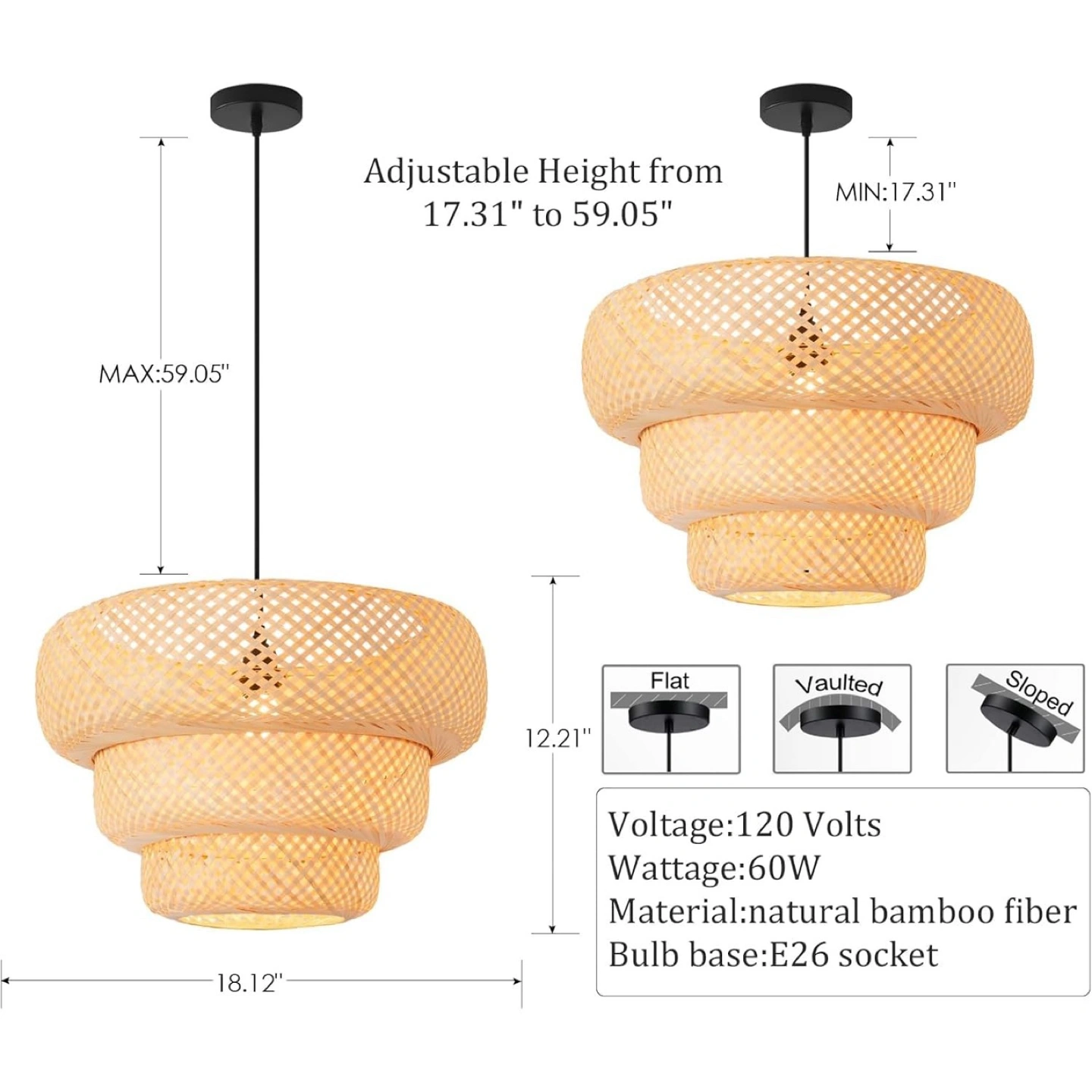 boho bamboo pendant light, rattan chandelier, wicker hanging light, natural material lighting, handwoven light fixture, bamboo ceiling lamp, eco-friendly pendant light, kitchen island lighting, dining room chandelier, bohemian light fixture, coastal decor lighting, organic modern pendant, bedroom hanging lamp, handmade bamboo lamp, woven ceiling light, light fixture for cafes, natural rattan light shade, adjustable hanging light, E26 socket pendant, rustic pendant lamp, tropical style lighting, farmhouse bamboo pendant, warm tone ceiling light, entryway pendant light, living room hanging light, decorative woven light fixture, textured light shade, artisan-made light, boho chic lighting, unique bamboo decor