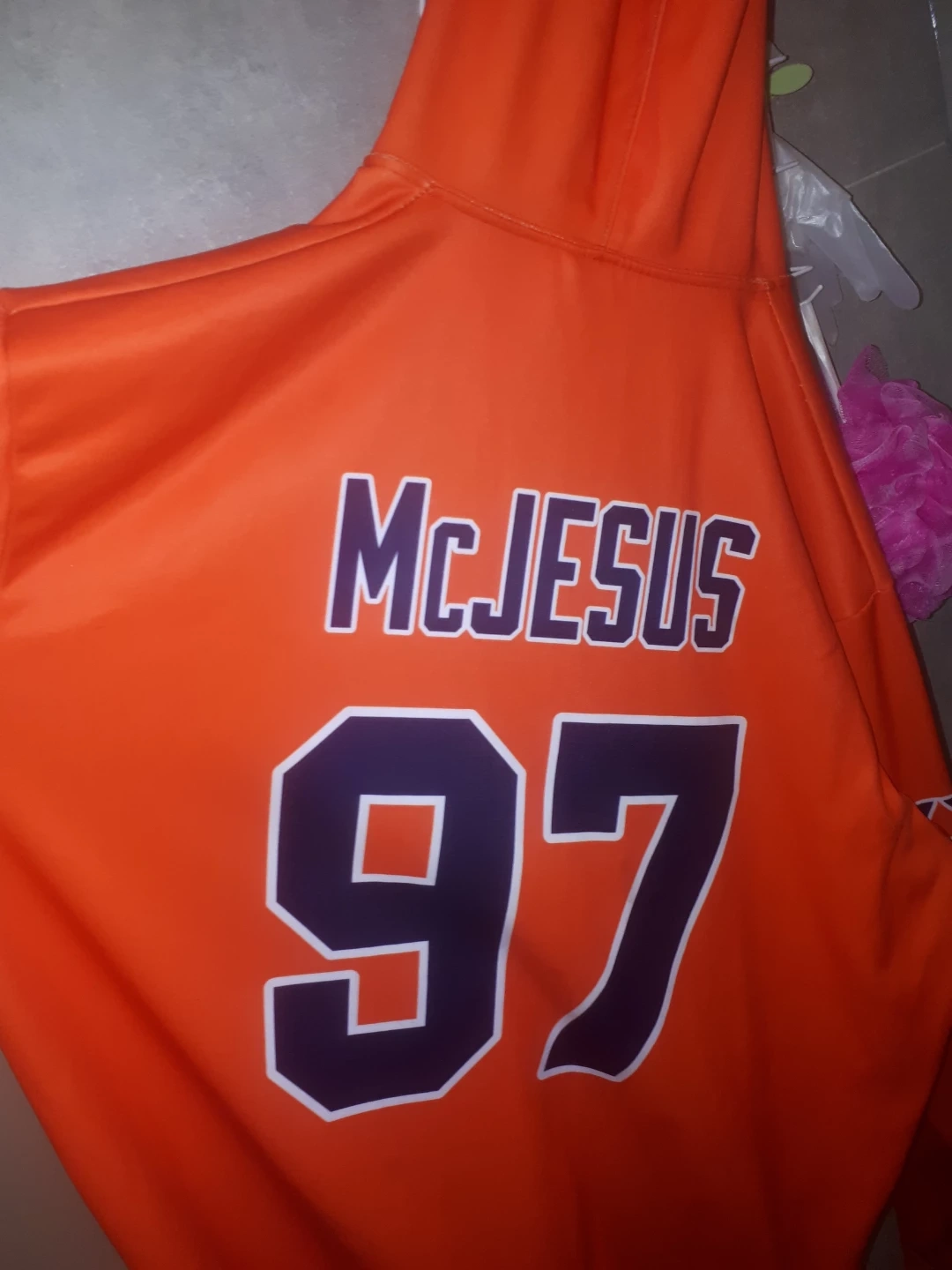 Orange Connor McDavid Oilers hoodie. Features McJesus 97 on the back and the Connor logo on the front and sleeve. Minor damage near the pocket. Men's size.2xl selling cuz ripped the pocket a little last nights win 50$ pbo retail goes for 145$