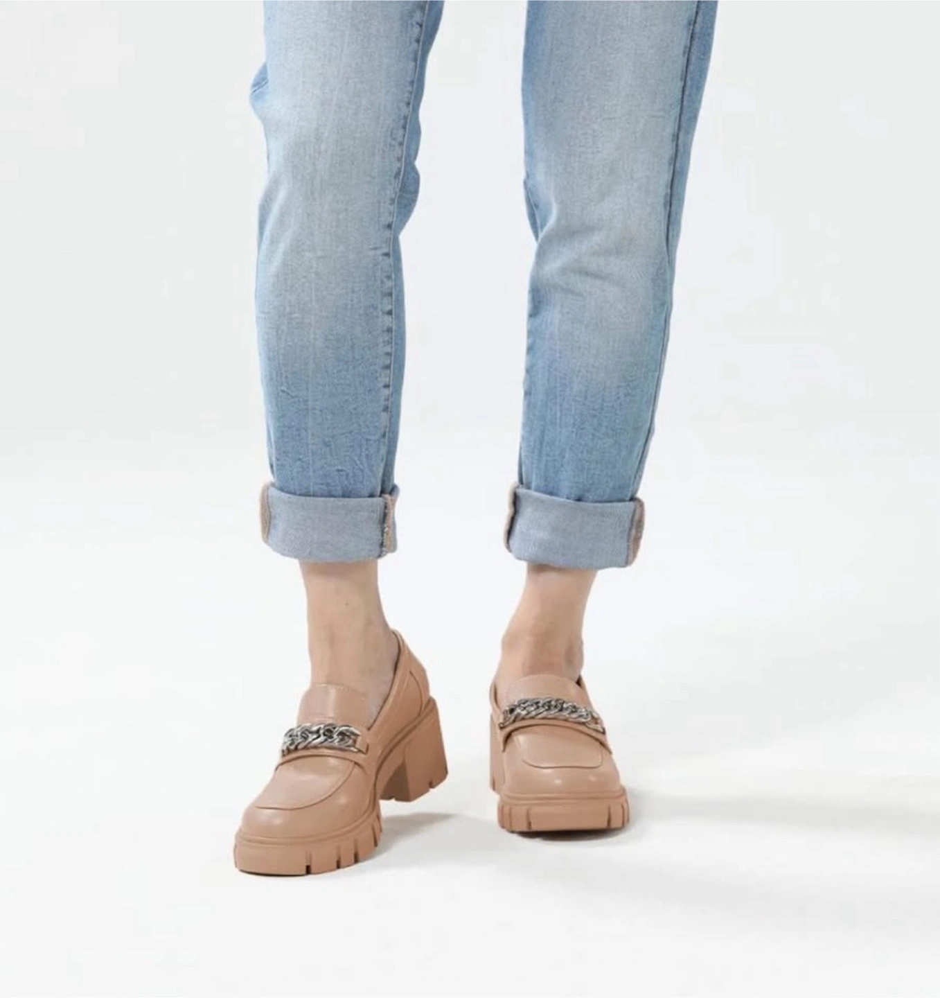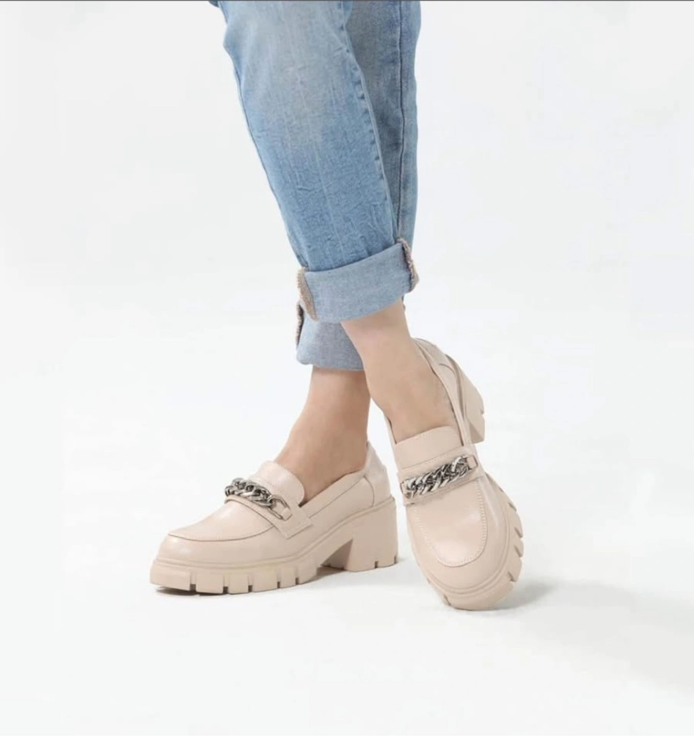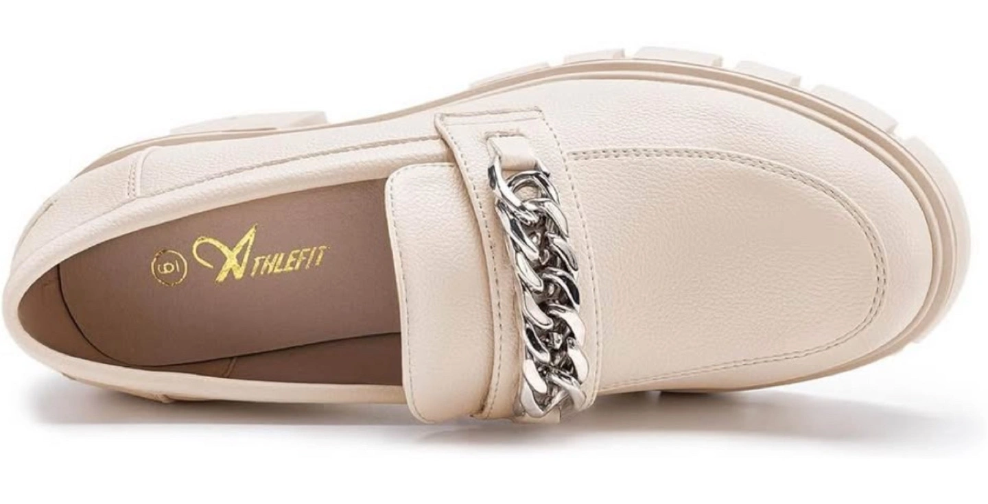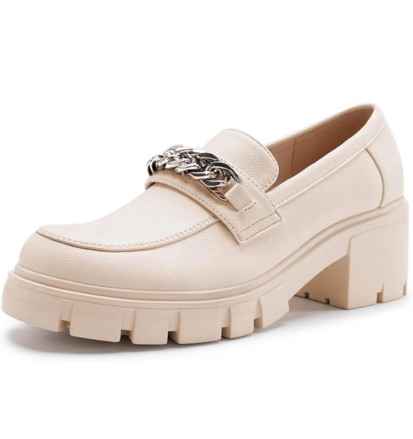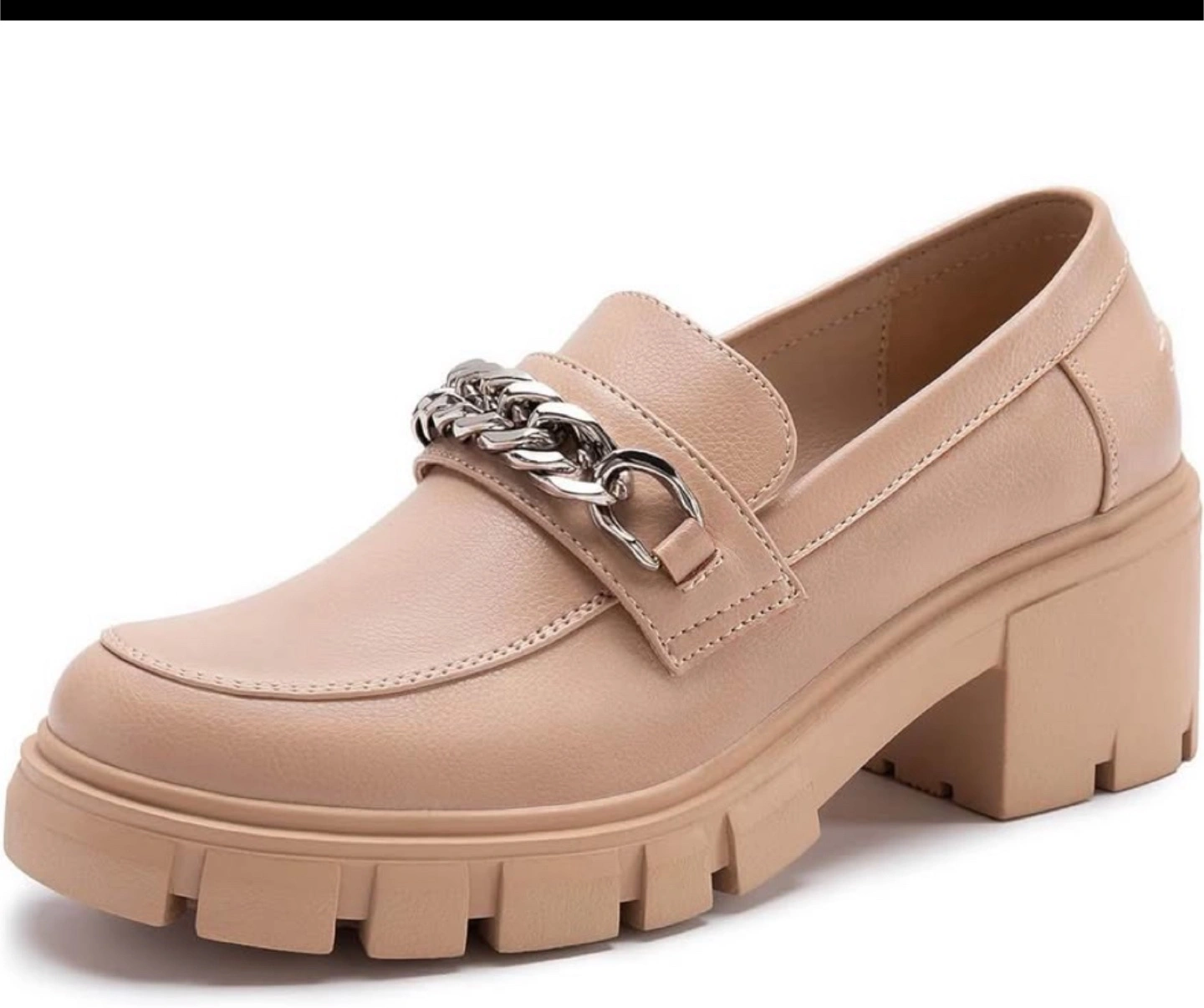 Athlefit Women's Platform Loafers Slip On Lug Sole Chunky Loafers with Chain Round Toe Business Work Shoes, colour Beige/ Apricot Size: 8.5 Beige 8 Apricot.
