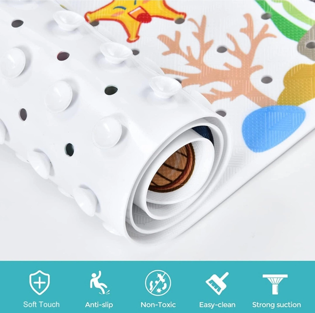 Tubozadi Baby Bath Mat for Tub Kids Non Slip Bathtub Mats Baby Extra Long 40X16 Inch Bathroom Toddler Anti Slip Shower Mat with Suction Cups & Drain Holes,Machine Washable,Whale New never used, pick up in panatella walk nw Calgary