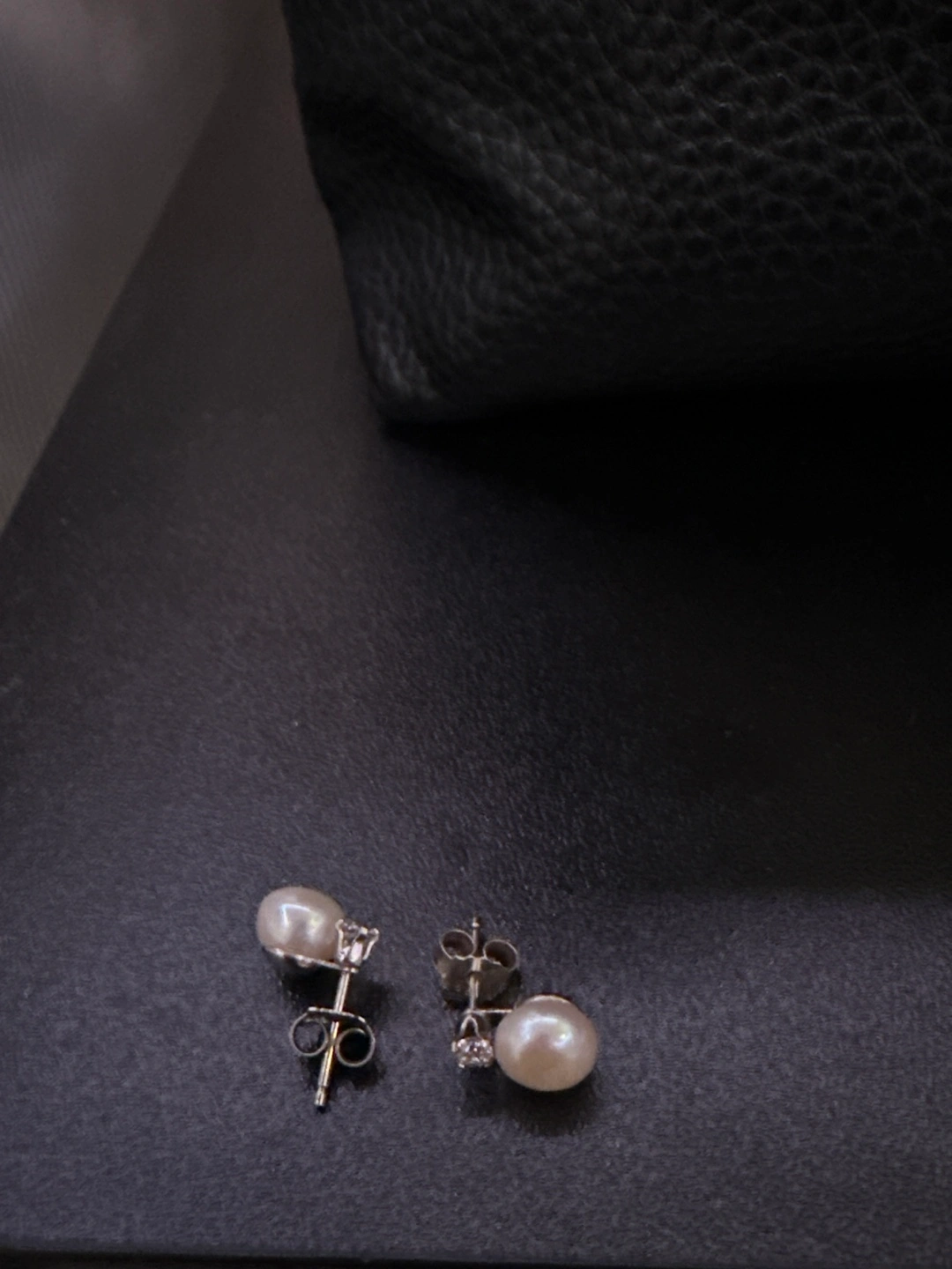 Beautiful pearl and diamond stud earrings. Subtle and elegant design. Perfect for everyday wear or a special occasion. Silver tone metal.