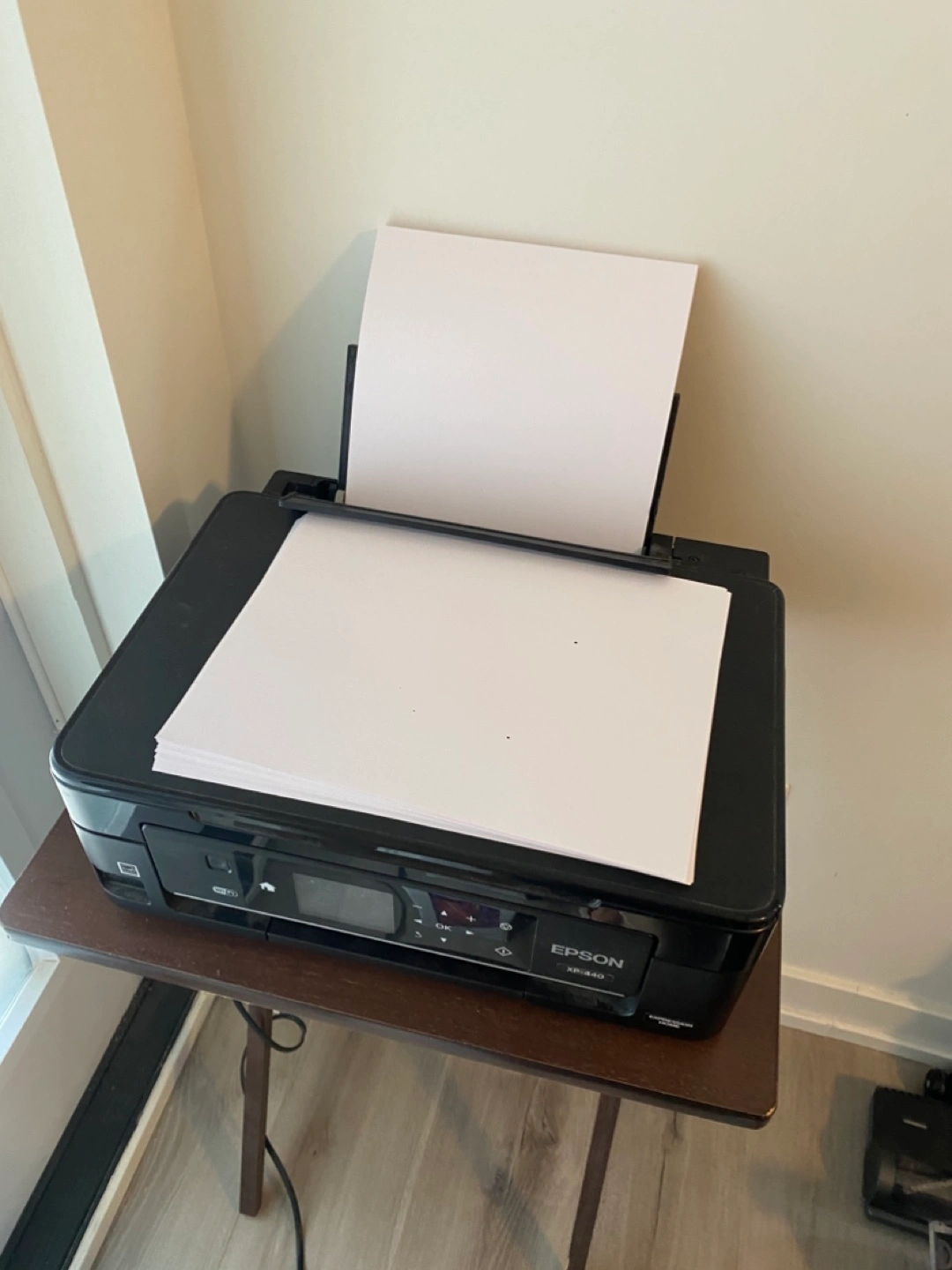 Wireless inkjet printer. Good condition. Includes power cord. Paper tray and output tray. Ready to print.