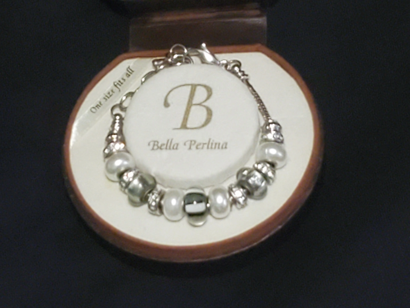 Beautiful bracelet, one size fits all. Silver tone chain and beads. Includes faux pearls and decorative accents. Comes in original box.