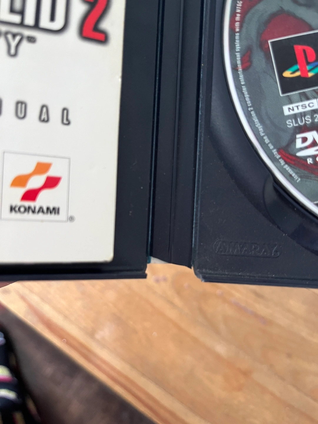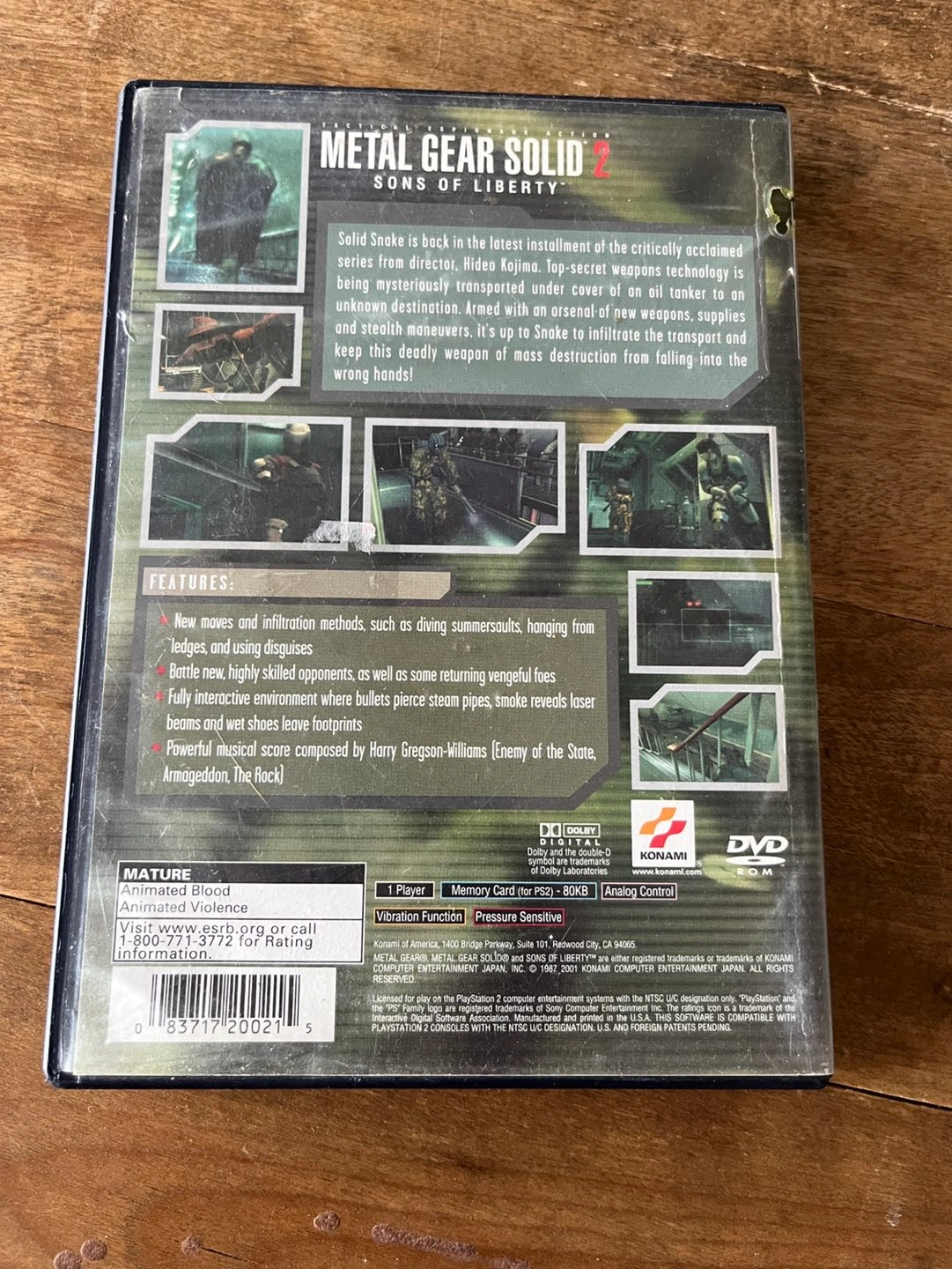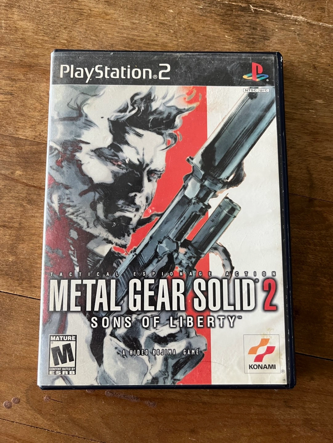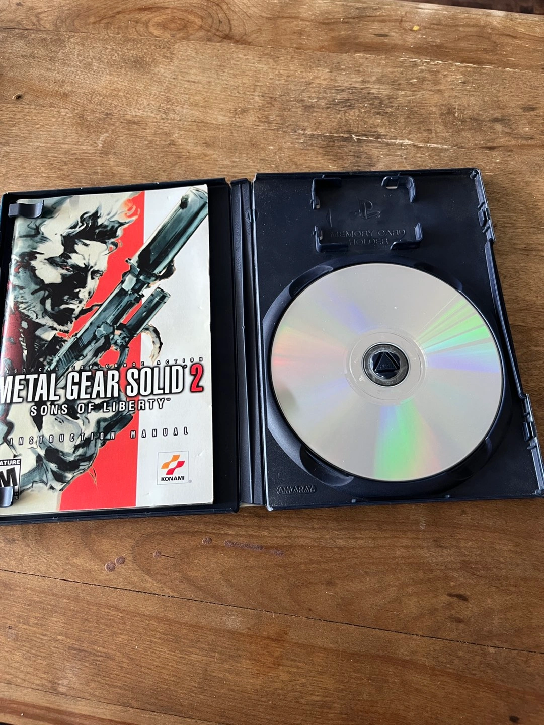 black label copy of metal gear solid 2 for playstation 2. small damage in corner of the case, still closes completely. see photo.