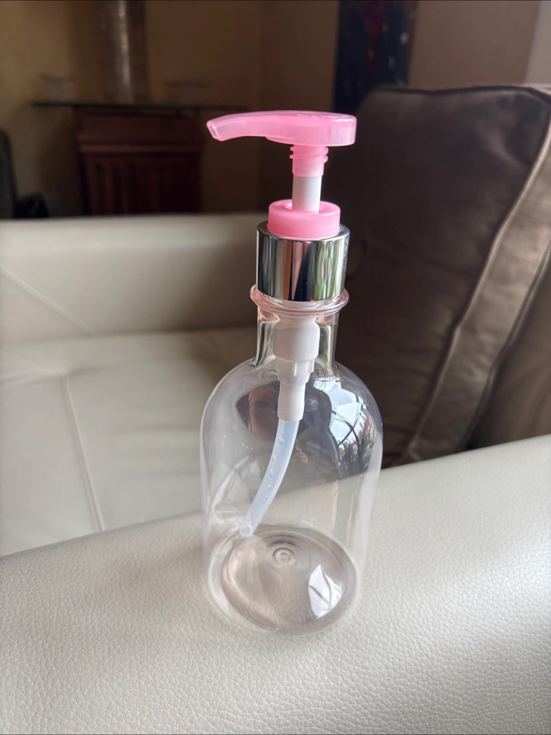 979Spring cleaning clear plastic bottle, pink and silver pump top. Perfect for refilling with your favourite cleaning products or lotion, or sanitizer. Great looking too! From a pet and smoke free home. Pickup only in the St Lawrence market area if downtown Toronto. Cash only.