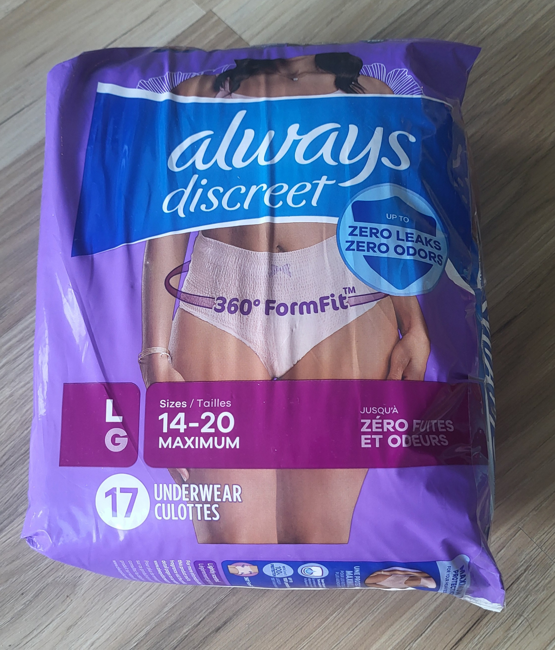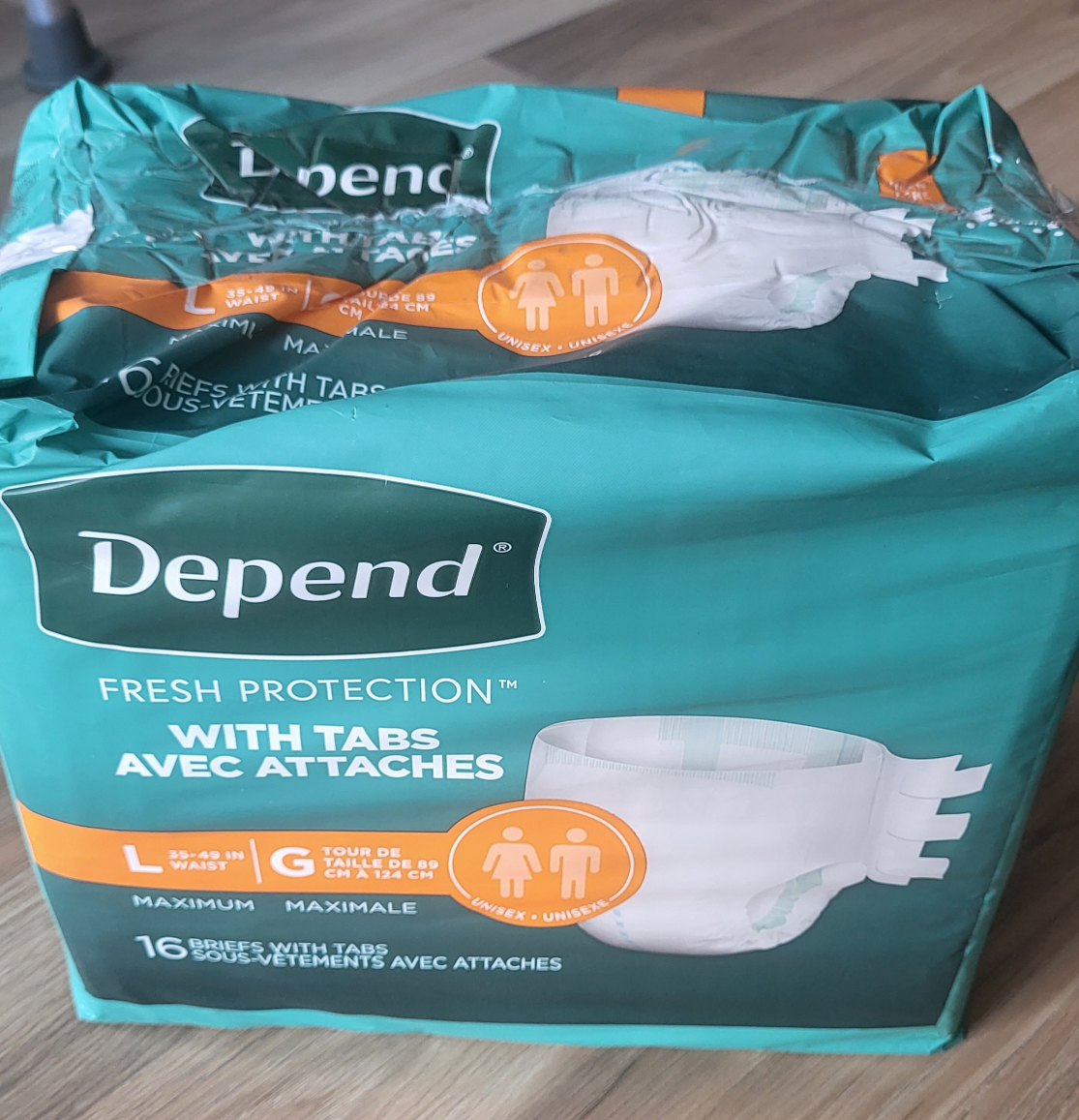 These are female underwear (brand always) and unisex briefs with taps (brand Depend). They are Large size. I bought both for my mom, but she needed a different size. These packages were opened previously.