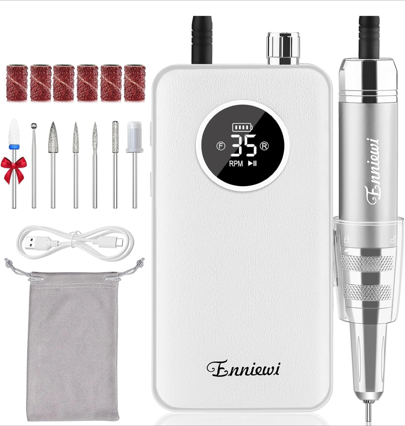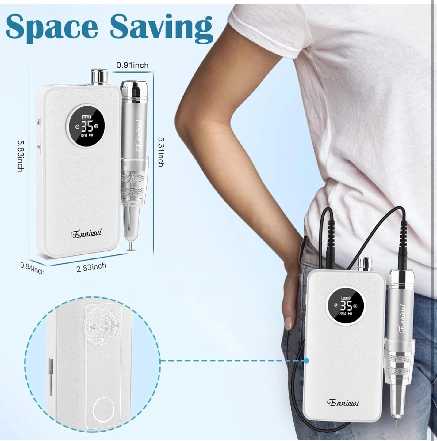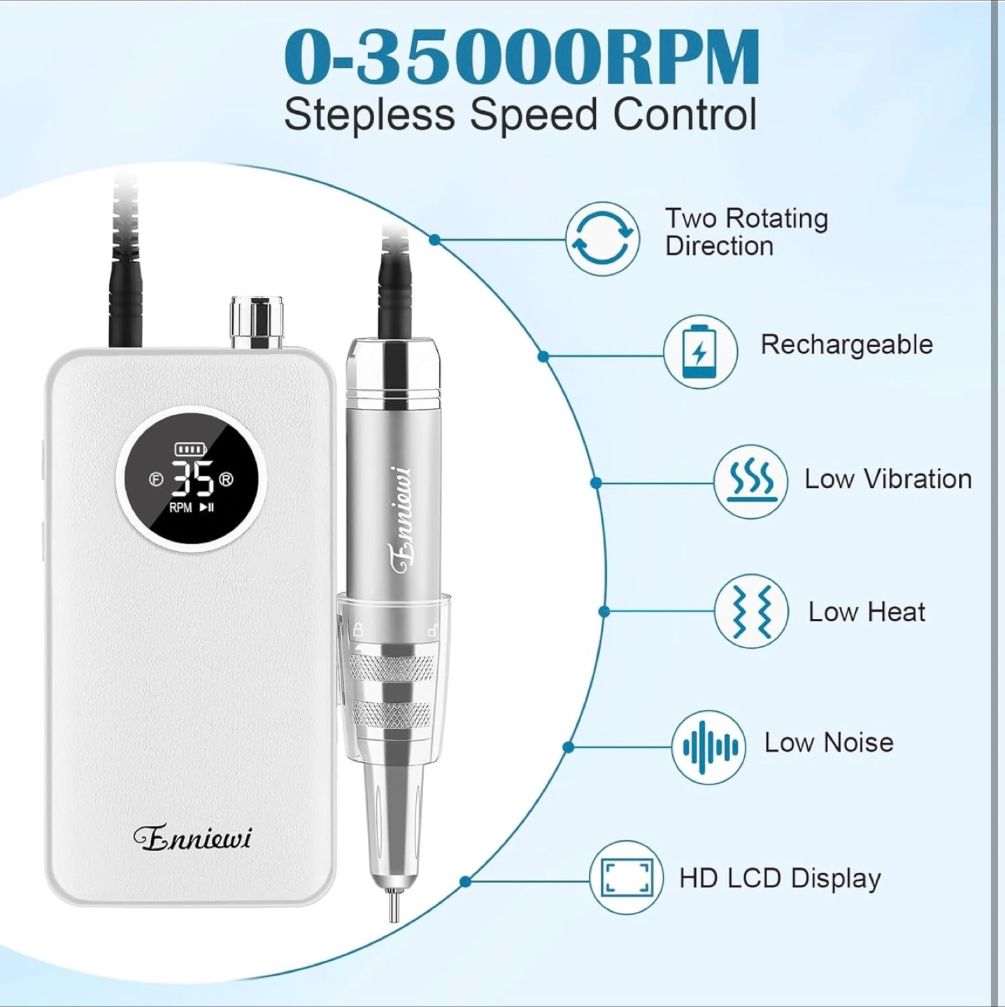 265I am selling an Enniweii nail drill machine. This professional-grade tool features a high-speed motor reaching up to 35000 RPM, perfect for salon-quality manicures and pedicures at home. Specifications: * Adjustable Speed: 0-35000 RPM * LCD Display: Shows speed and battery level * Rechargeable: Cordless operation for convenience * Low Vibration: Ensures comfortable use * Multi-functional: Suitable for various nail tasks Unleash your inner nail artist with this fantastic drill! Remember, if the ad is up, it's still available for you to grab. Let's make your nails the talk of the town! .