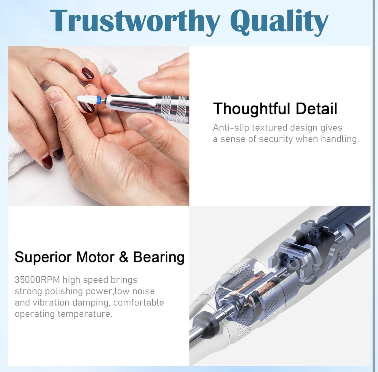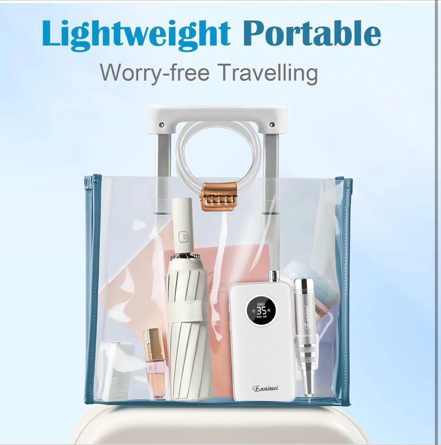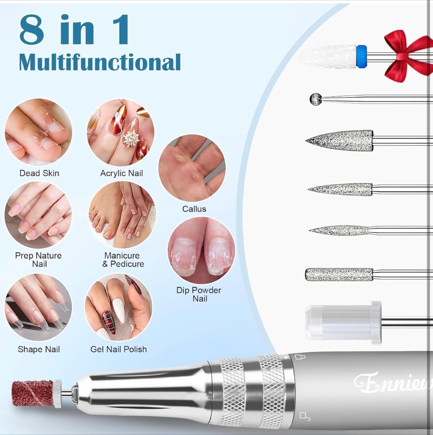 265I am selling an Enniweii nail drill machine. This professional-grade tool features a high-speed motor reaching up to 35000 RPM, perfect for salon-quality manicures and pedicures at home. Specifications: * Adjustable Speed: 0-35000 RPM * LCD Display: Shows speed and battery level * Rechargeable: Cordless operation for convenience * Low Vibration: Ensures comfortable use * Multi-functional: Suitable for various nail tasks Unleash your inner nail artist with this fantastic drill! Remember, if the ad is up, it's still available for you to grab. Let's make your nails the talk of the town! .