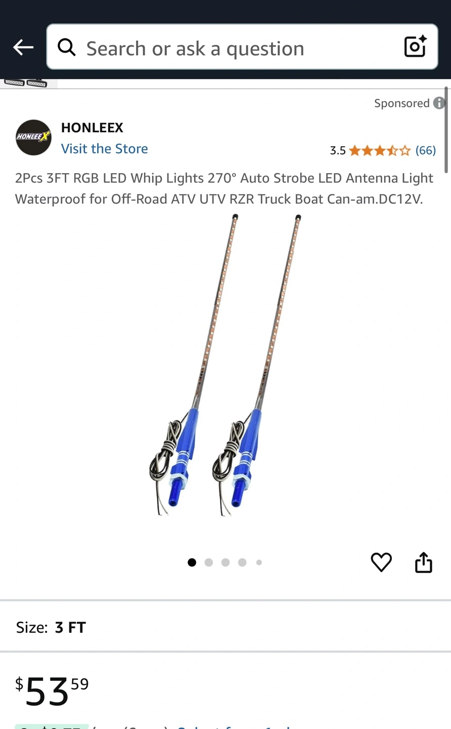 43HONLEEX 2Pcs 3FT RGB LED Whip Lights 270° Auto Strobe LED Antenna Light Waterproof for Off-Road ATV UTV RZR Truck Boat Can-am.DC12V Retails: $53.59 + tax Asking: $35 Have multiple sets available Brand new never installed Comes in box and packaging Pick Up Waterdown Area