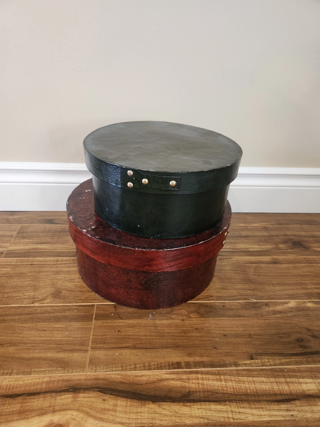 Buy & SellPair of Vintage Round Hat BoxesPair of Vintage Round Hat Boxes$20Two vintage round hat boxes. One dark red, one dark green. Shows some wear. Perfect for storage or decoration.ConditionGood0 chats·1 favorites·18 viewsSELLERCatherineQueensland161 reviewWHERE TO MEETQueensland