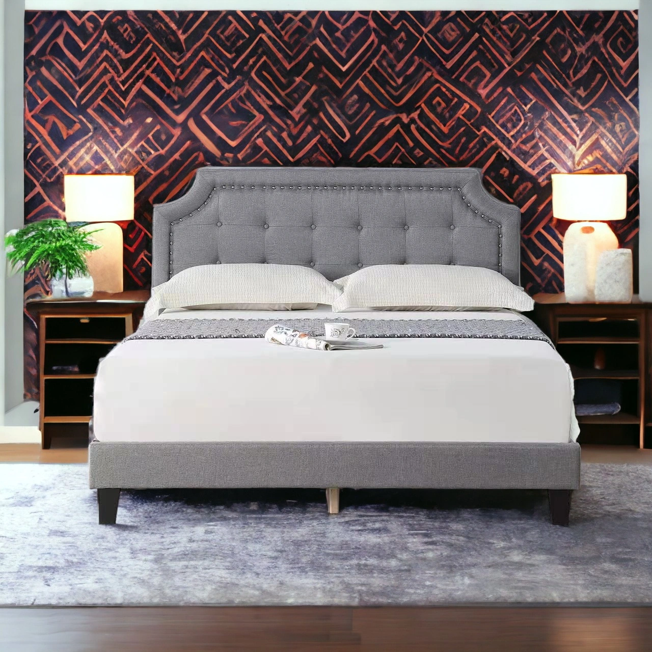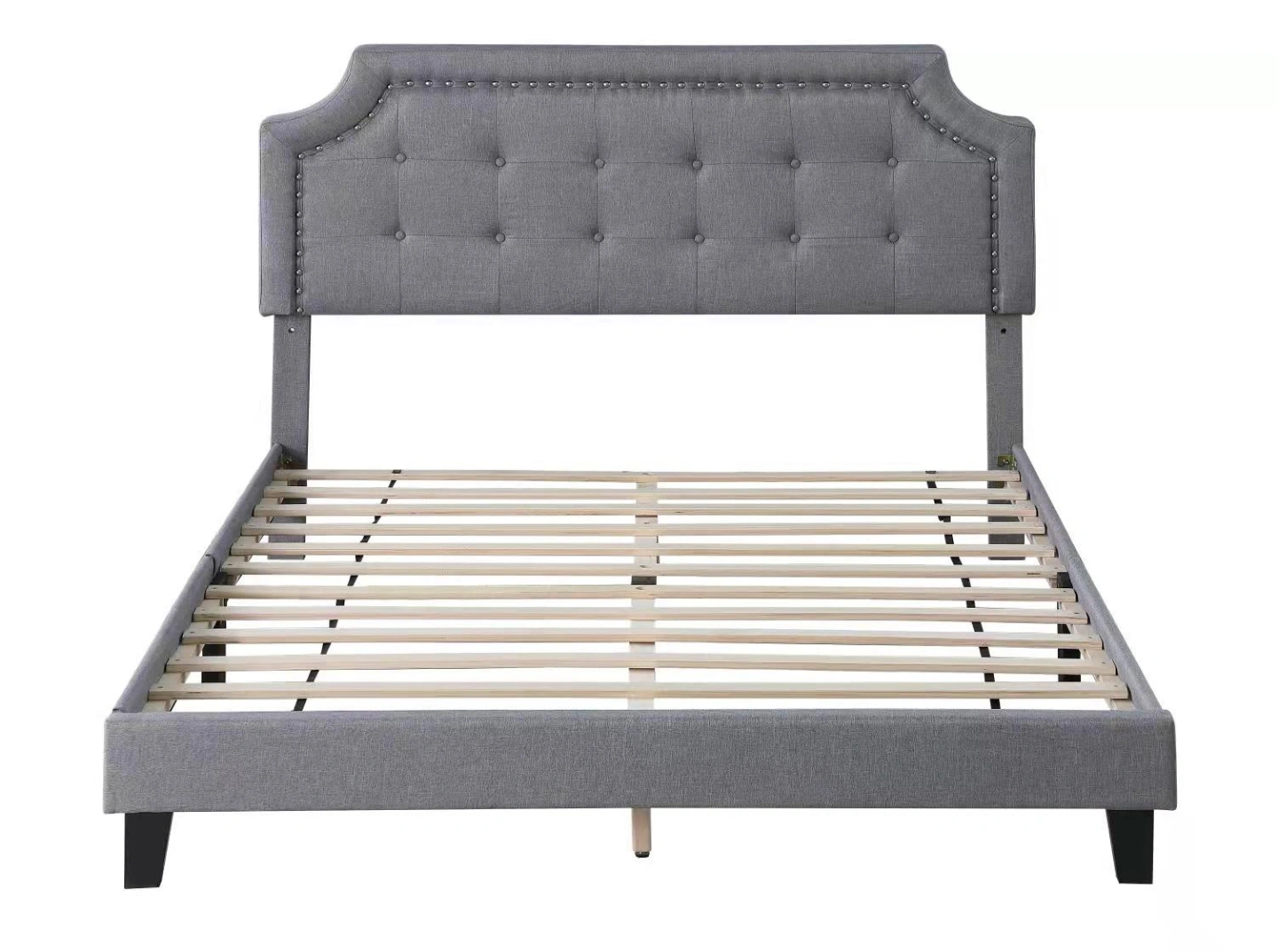 Upgrade your bedroom with this stylish Grey Linen Fabric Bed Frame featuring a 41" high headboard. No box spring needed—slats, tools, and instructions included.