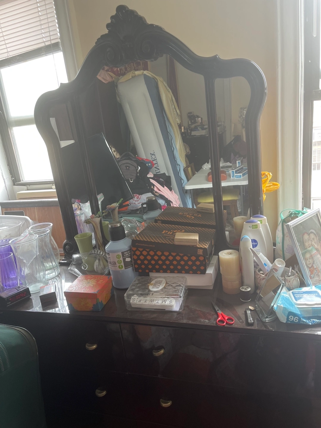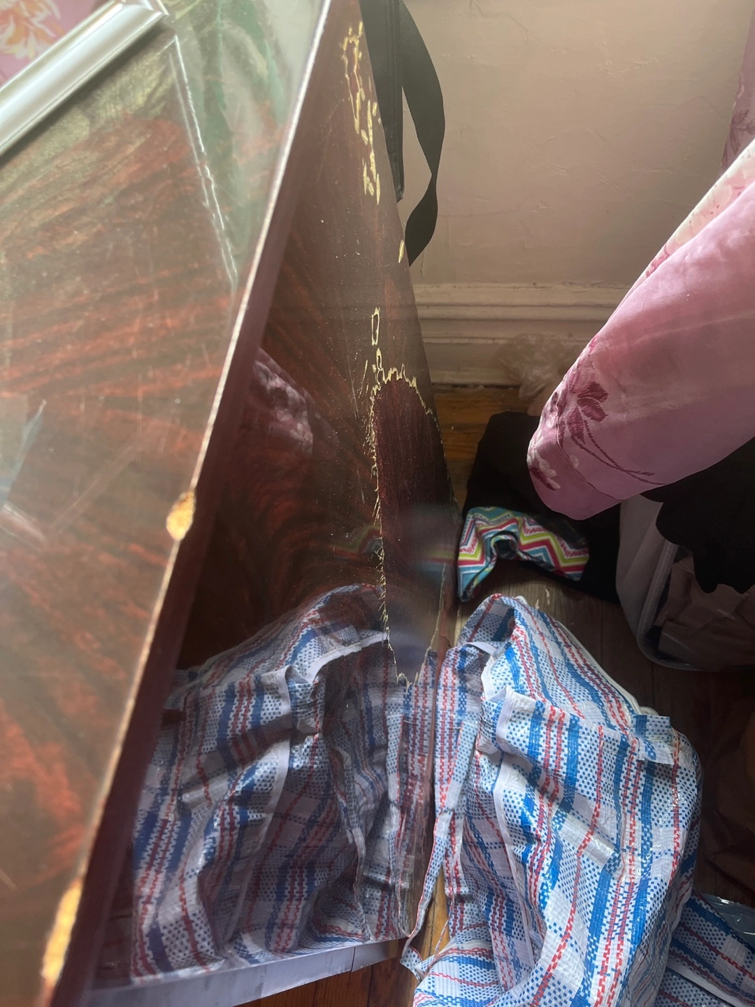 Dresser with mirror. Dresser is not in a very good condition on the side.