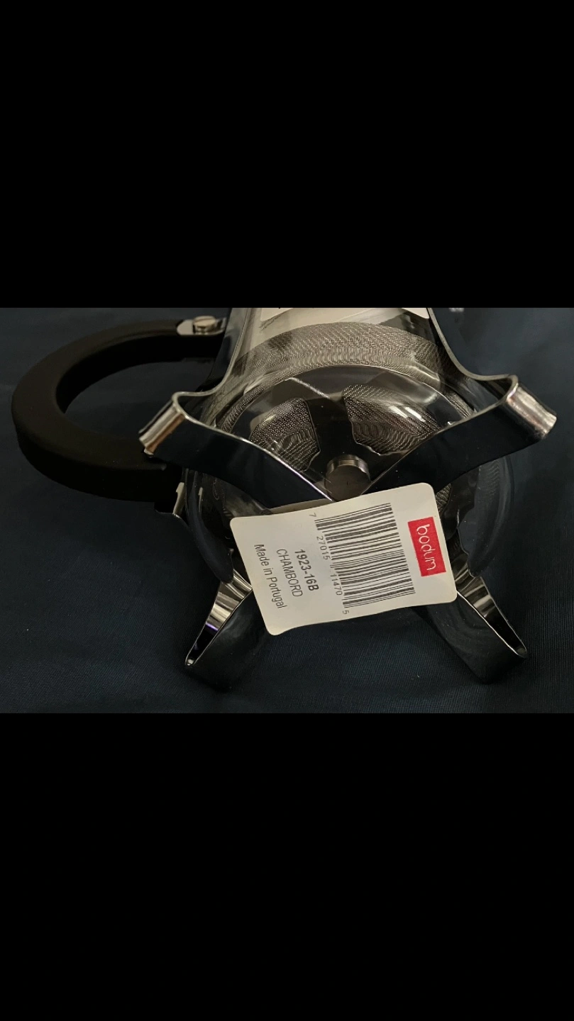 1000+BNWT The original french press Bodum Chambord 3-cup, 12-ounce French press coffee maker. These things are wonderful and this size doesn’t take up much space in the kitchen, and is easy to clean. This is the cute small size, it is enough for one person, to make a single serving sized cup of coffee. Black handle, and stainless steel frame and lid, with Glass beaker. Comes with Bodum Spoon and instructions inside. Made in Portugal 🇵🇹 I originally bought this at Homesense for $19.99+ taxes, selling for only $15! ☕️🫖🧡