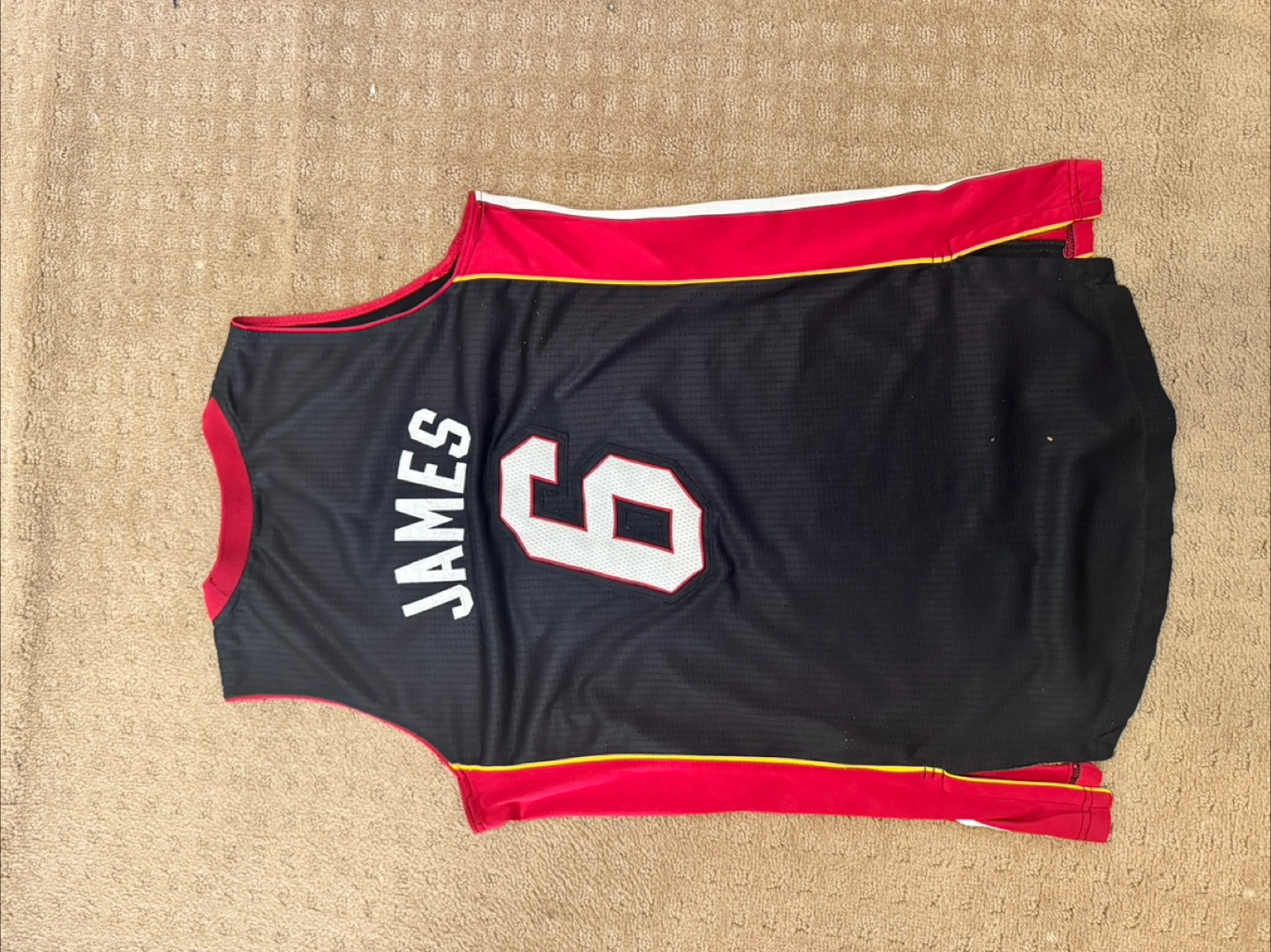 Men's size medium black Adidas Miami Heat LeBron James jersey. Number 6 on the back. Good condition.