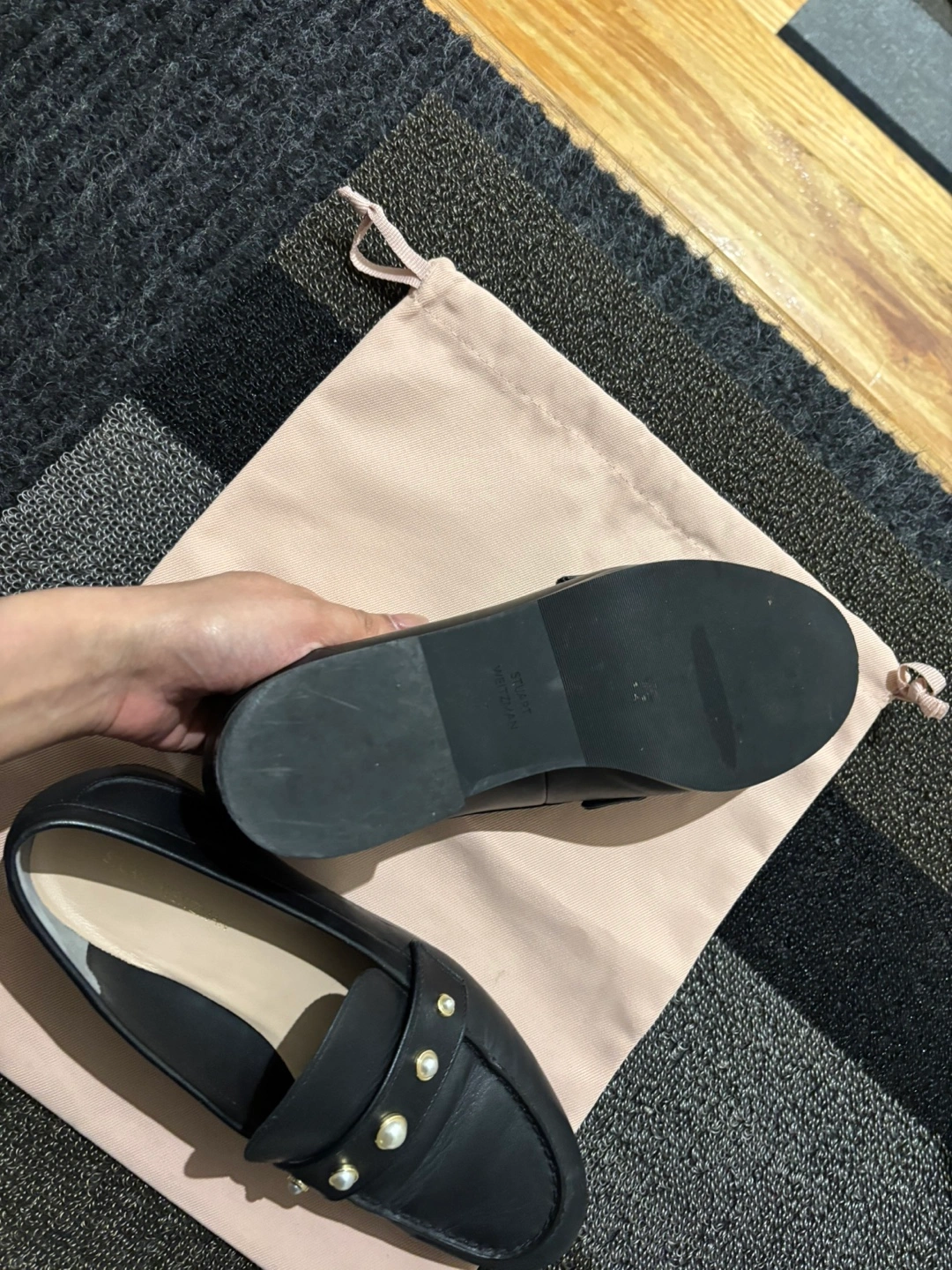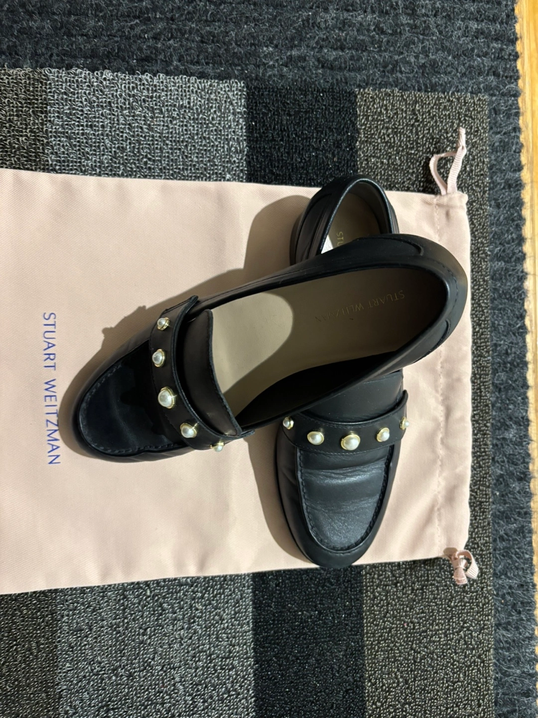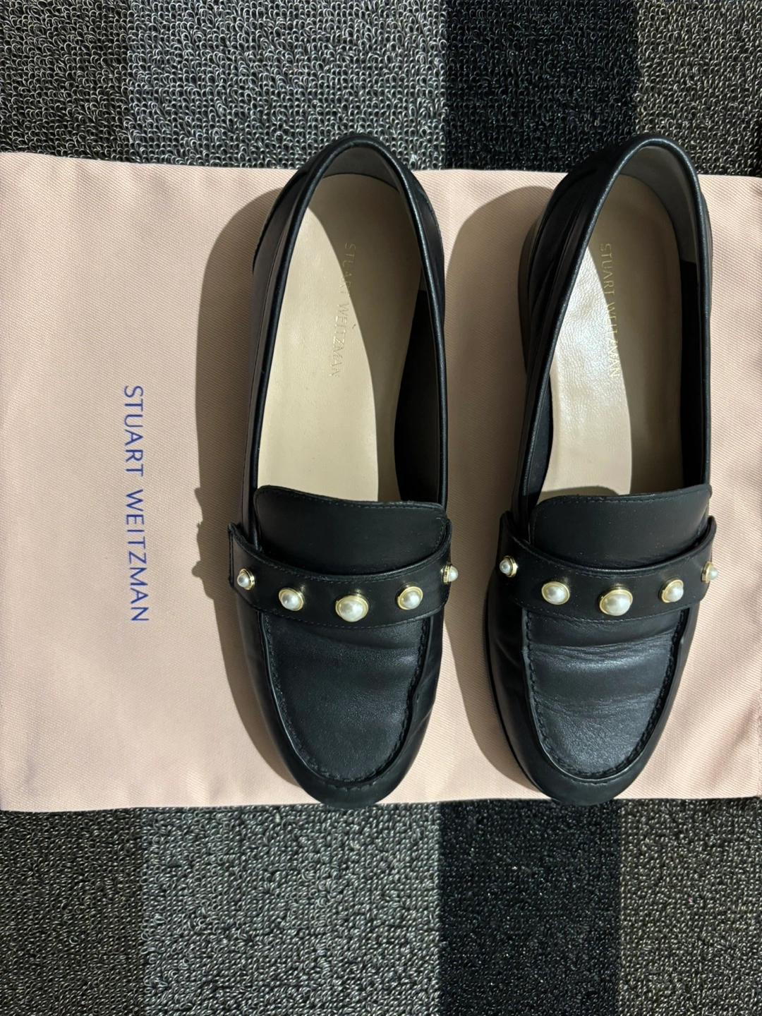 25Brand New Authentic Women's black leather loafers. Pearl embellishments. Comes with dust bag.