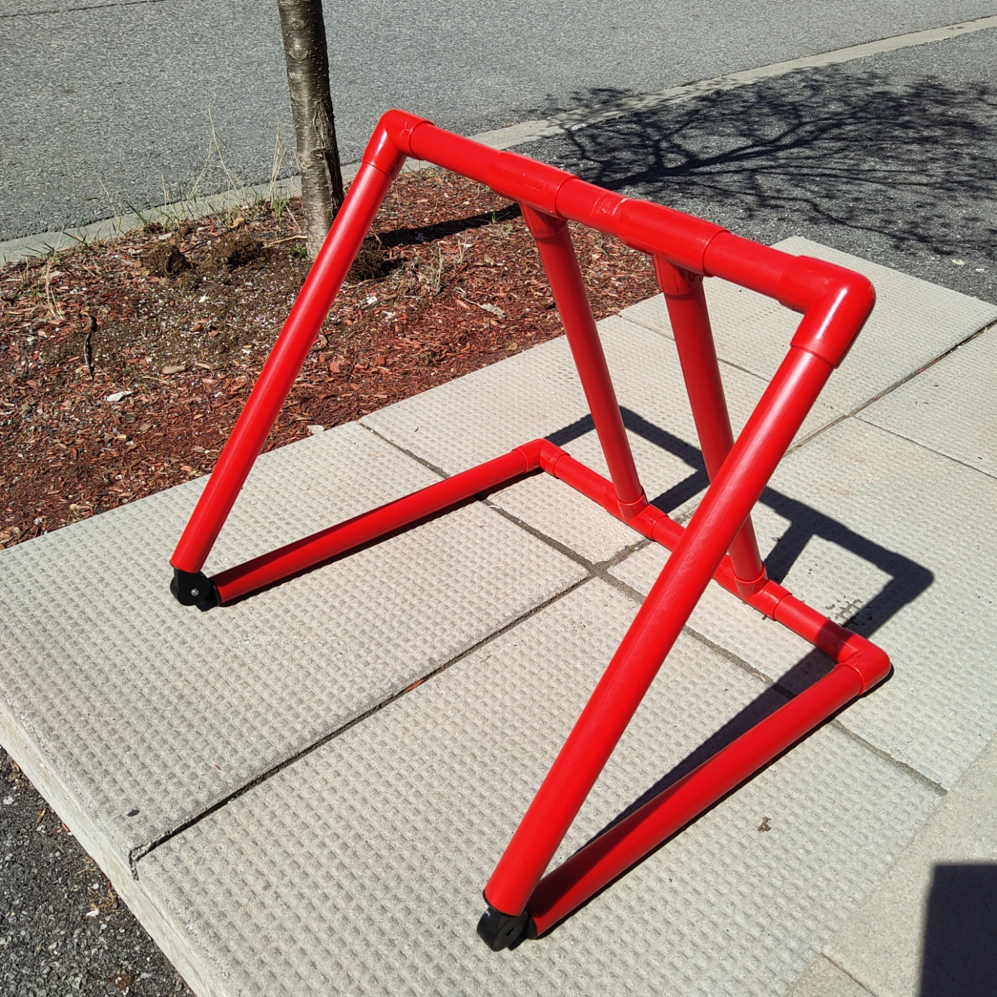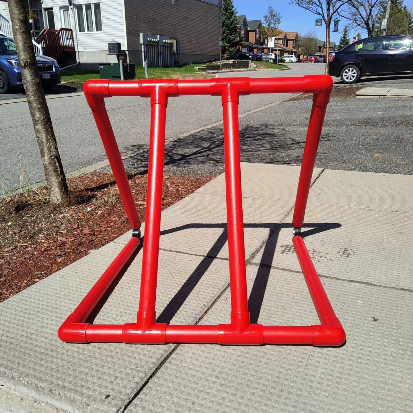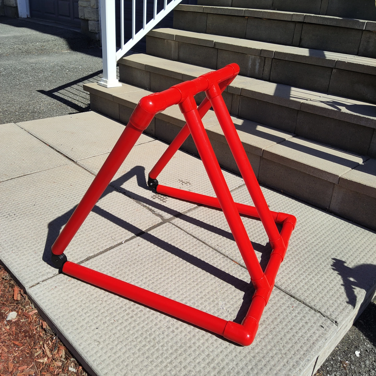 Red child's skating support. Model FI: 1057 (Lil' Skater). Ages 3 to 7. PVC construction. Portable and lightweight. Great for learning to skate. Made in Canada.