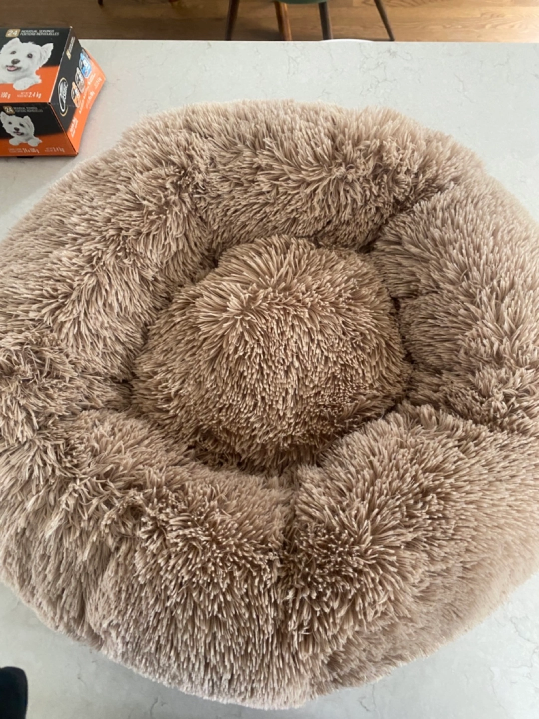 We got a dog and the vet told us these items weren’t suitable for the breed! Fluffy dog bed, great for small dogs. Variety pack of Cesar wet dog food (2 cans missing from 24 pack) and a bag of Crumps naturals mini trainers.