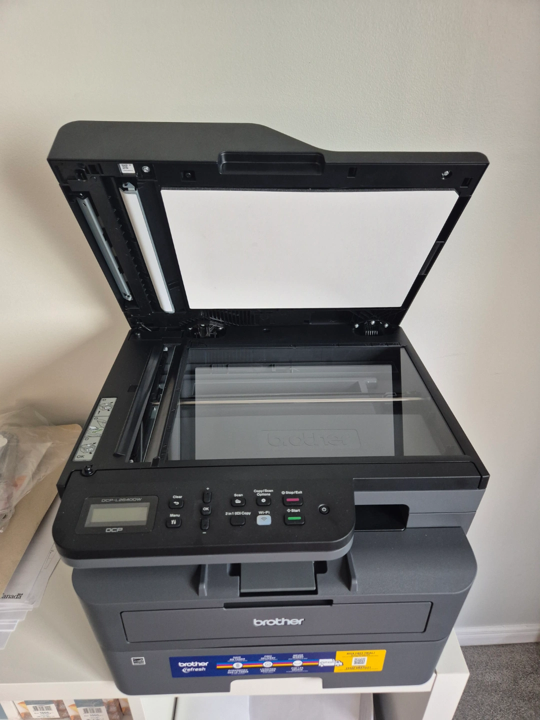 60Multifunction printer. Prints, scans, and copies. Wireless capabilities. Includes a flatbed scanner. Compact design. Excellent condition.