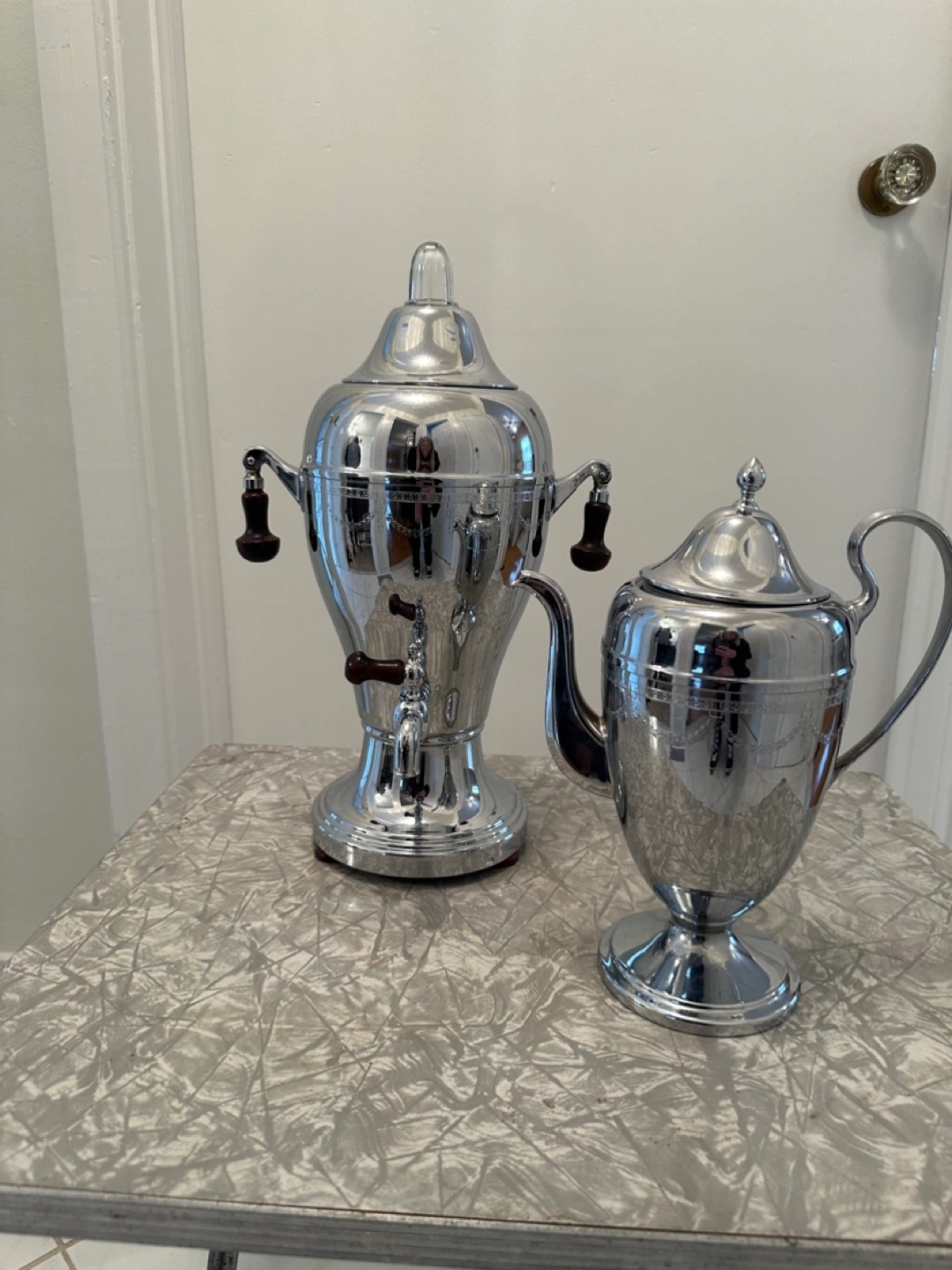 Beautiful vintage chrome coffee Elegant design. Perfect for a retro kitchen or as a collectible item. Both pieces are in excellent condition.