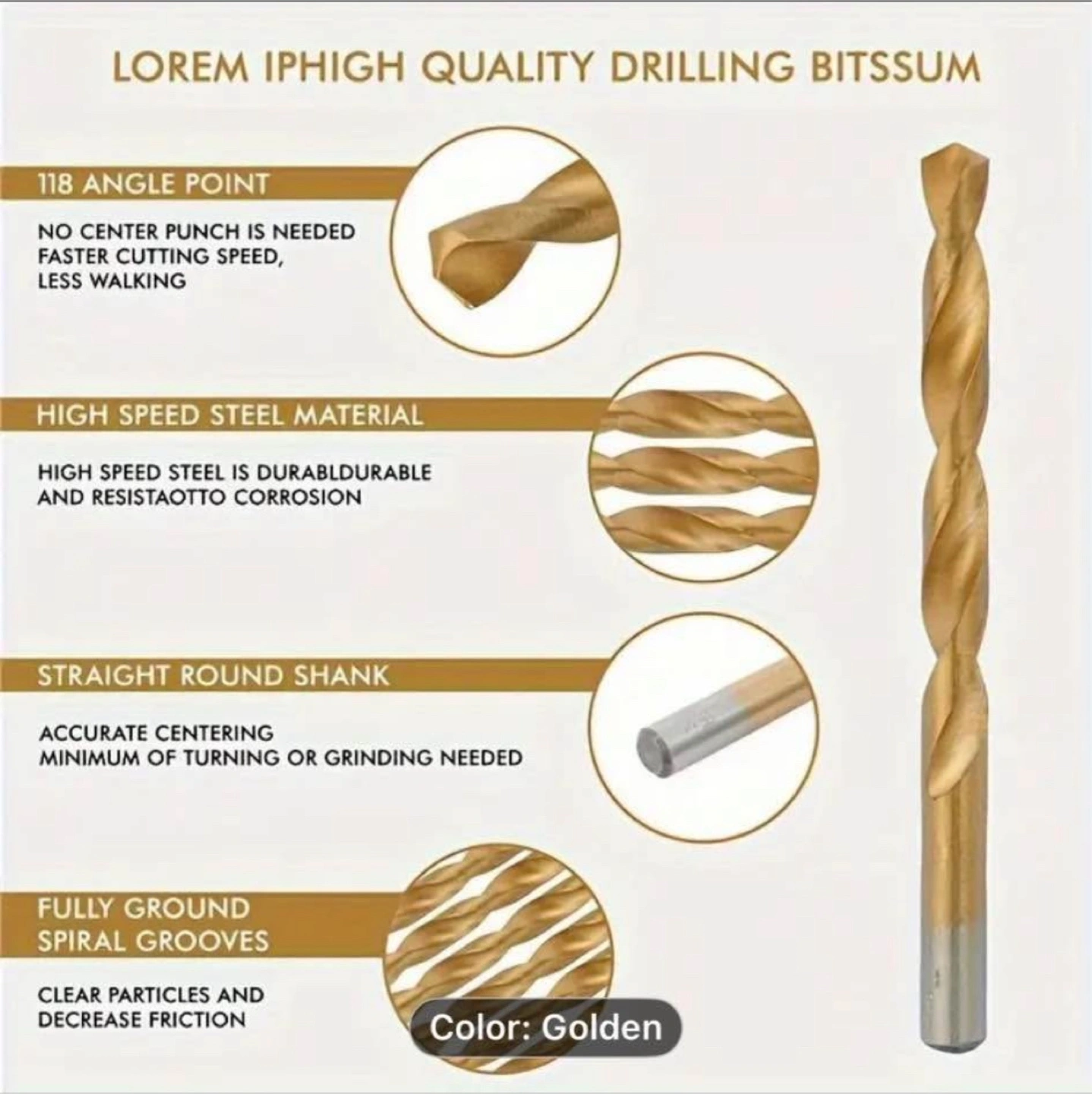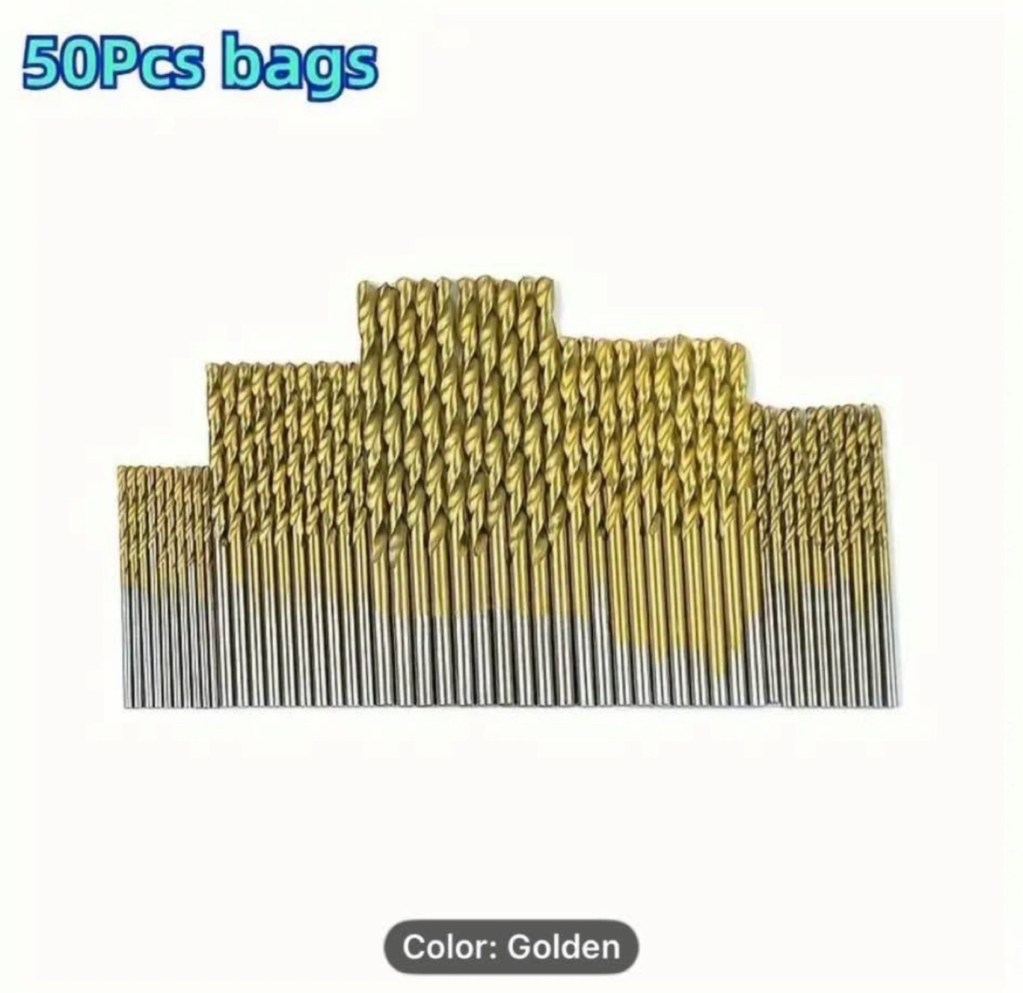 50pcs Titanium Coated High-Speed Steel Drill Bits - 135° Spiral Point, Hex Shank, Multi-Function Twist Drill Bits for DIY, Woodworking, Carving, Jewelry Making, Metalworking, DIY Crafting, Sleek Metallic Finish, Precision Drilling