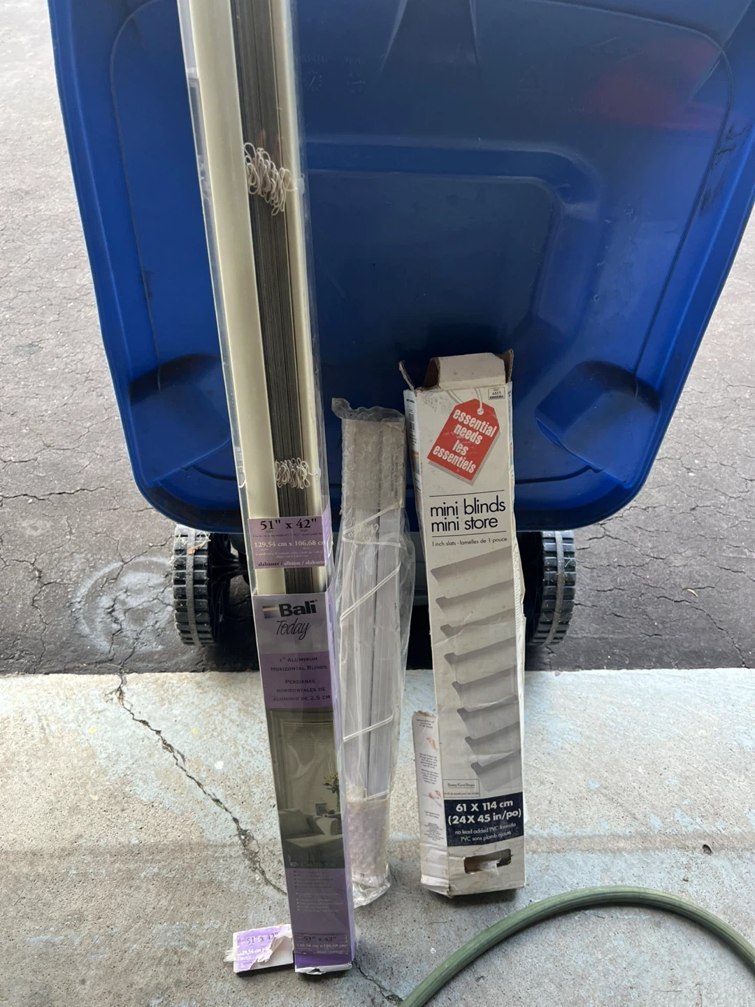 Selling a set of Bali Today aluminum horizontal blinds. They measure 51" x 42" (129.54 cm x 106.68 cm). Also included are mini blinds from mini store that measure 61 x 114 cm (24 x 45 in).